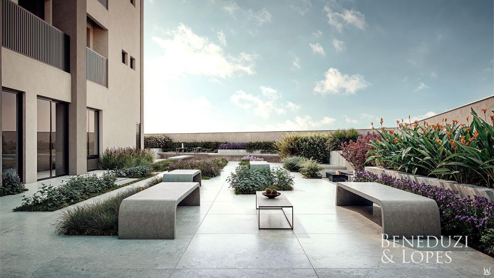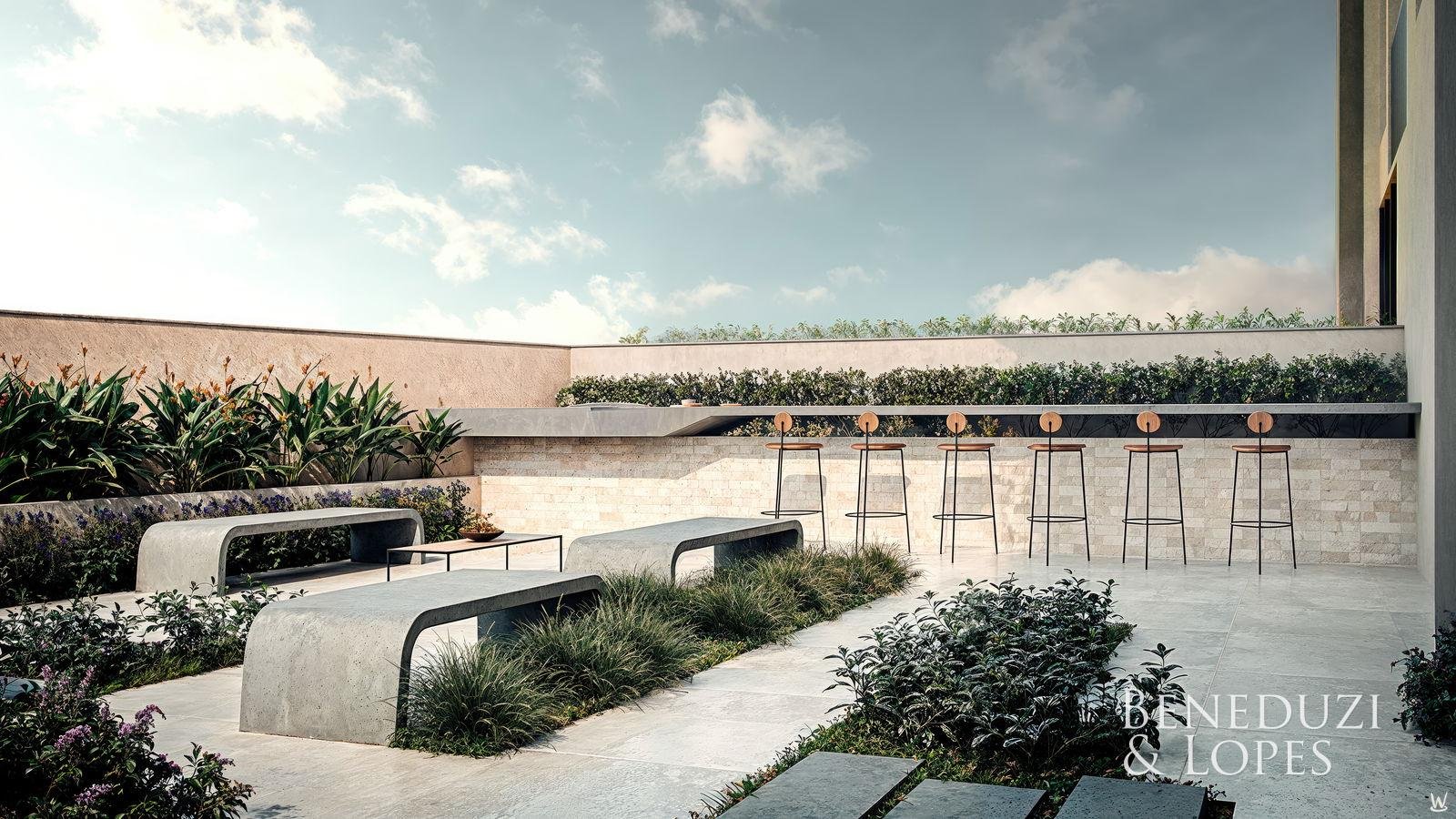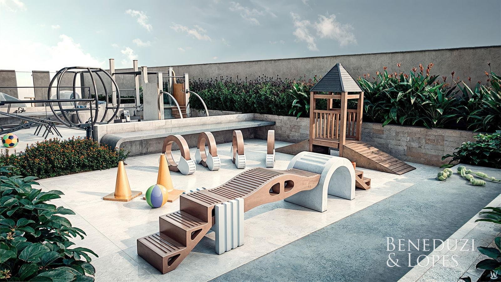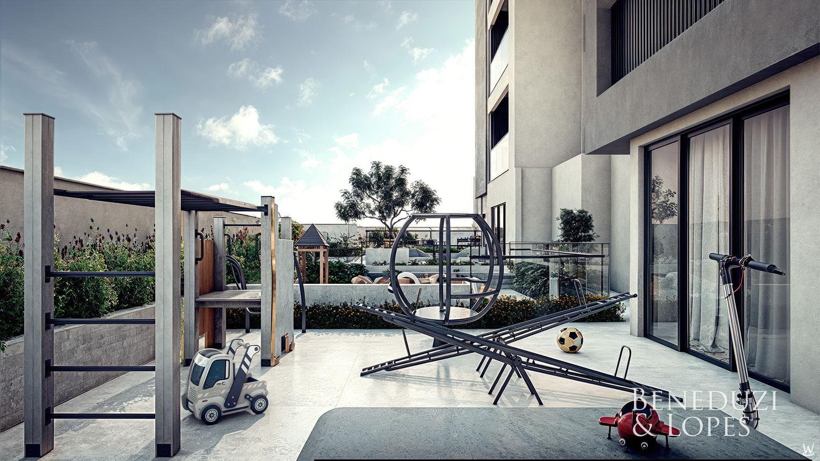 Sala de Reunião Spa Sauna Salão de festas Solarium Guarita de segurança Bicicletário Hall de entrada decorado e mobiliado Medidores de água, luz e gás individuais Rooftop Reaproveitamento de água Brinquedoteca Elevador Espaço gourmet Interfone Piscina Piscina adulto Academia Sala de jogos Playground