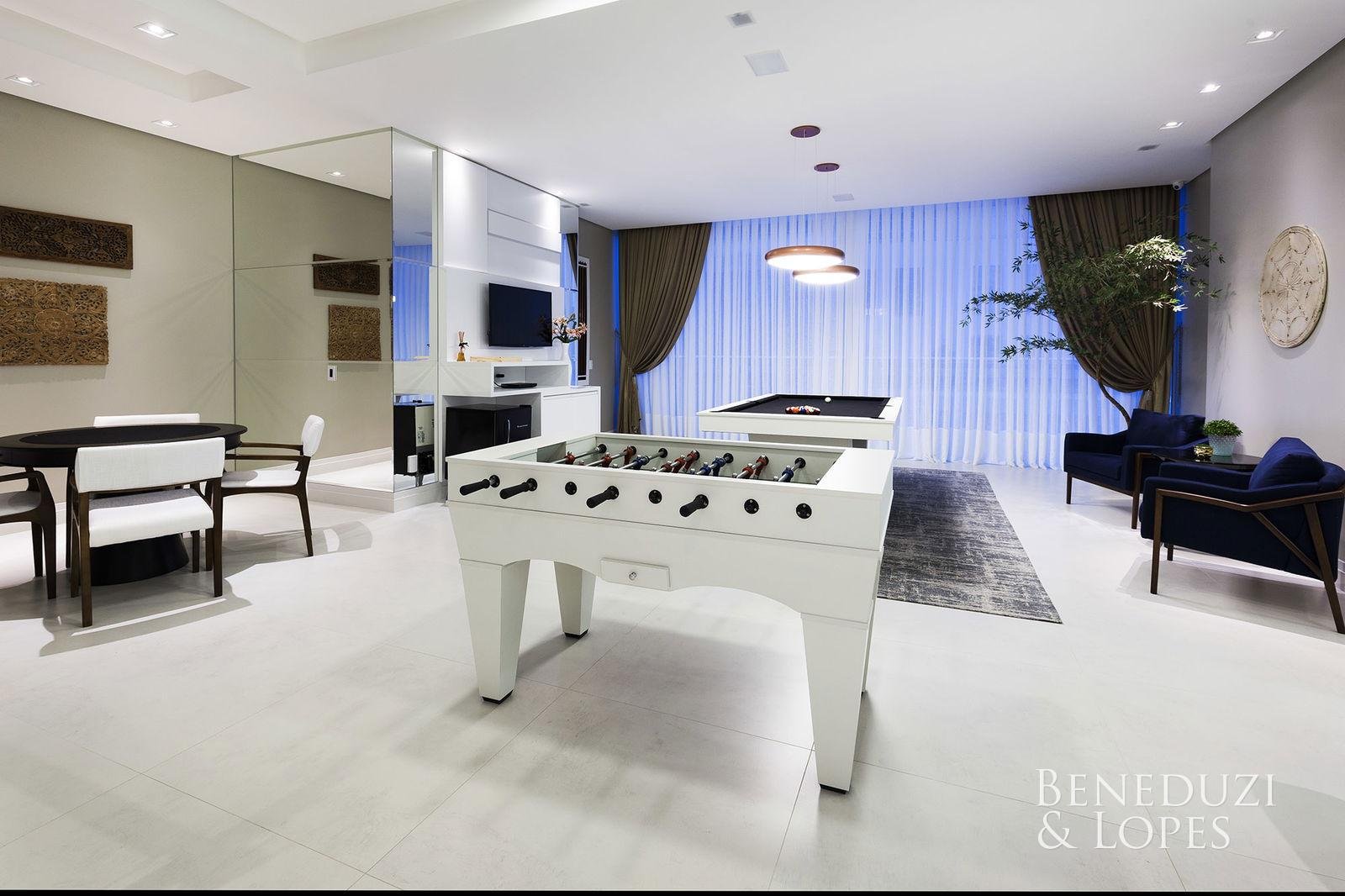 Apartamento com sala de estar e sala de jantar, oferecendo ambientes bem distribuídos e funcionais. Conta com lavabo, cozinha e área de serviço, além de churrasqueira, ideal para momentos de convivência.