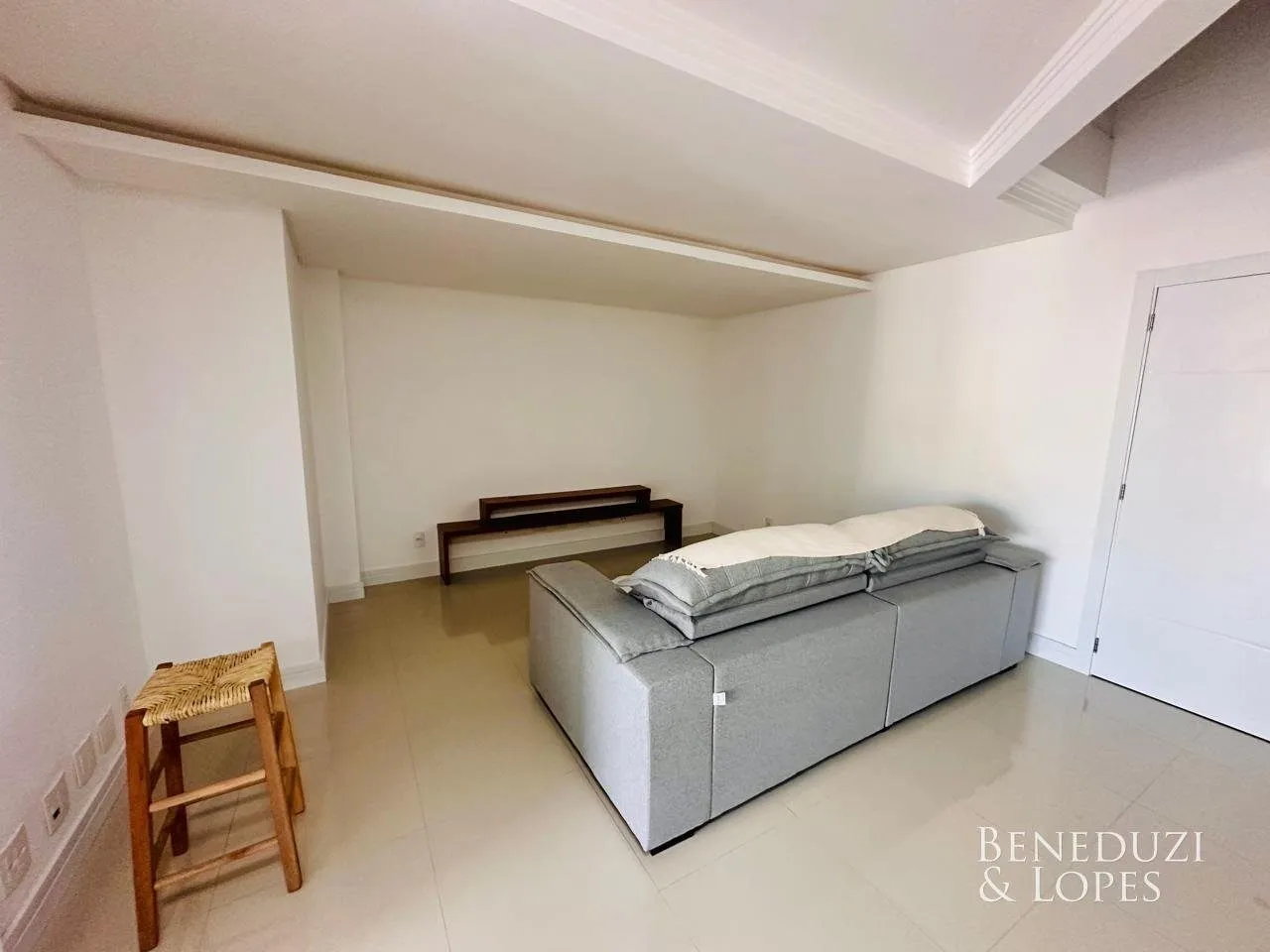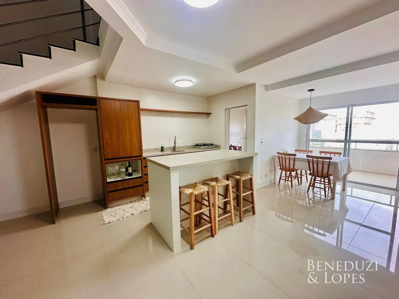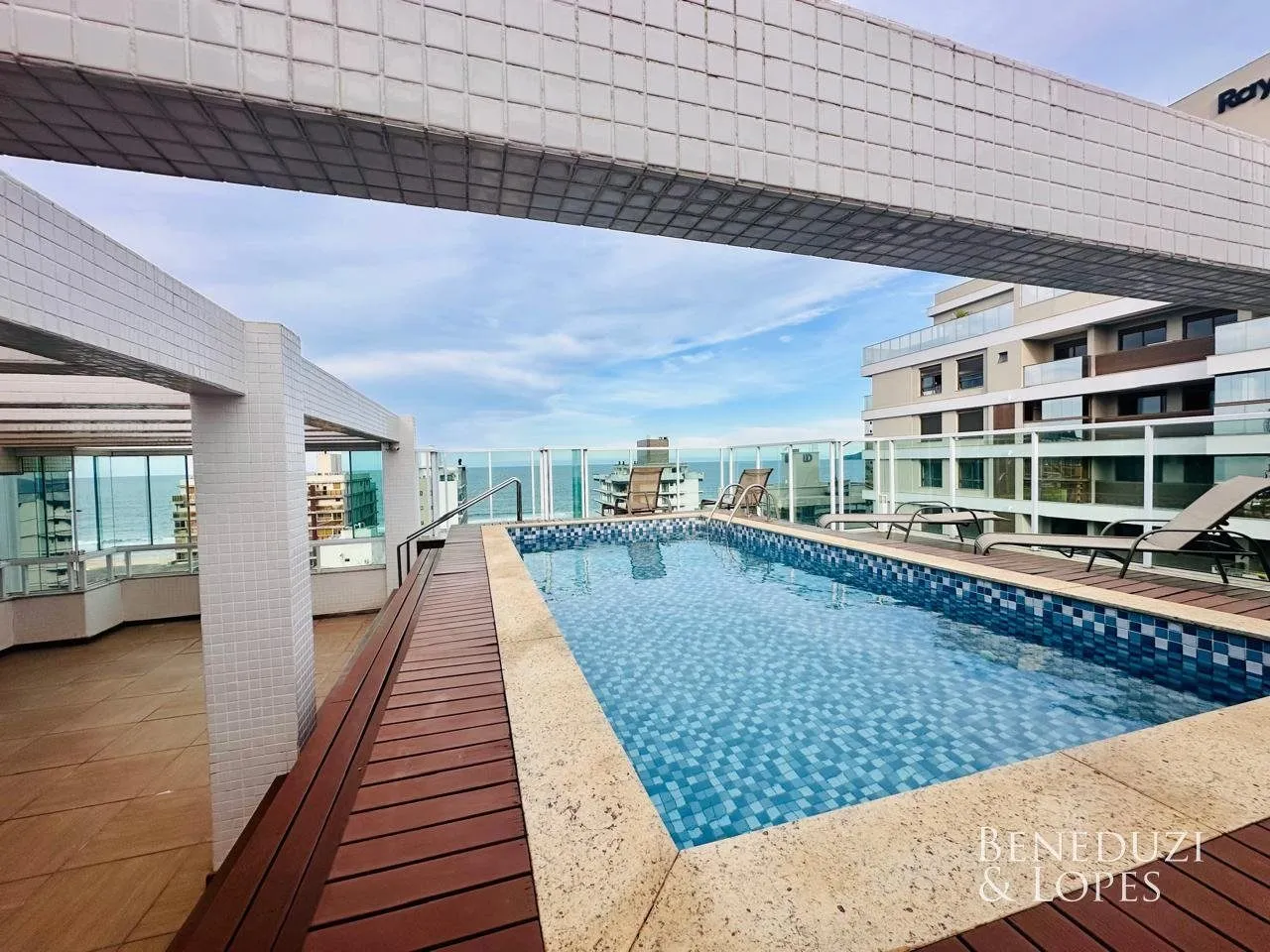 Apartamento Duplex, semimobiliado, com vista para o mar, de 03 quartos, sendo 03 suítes (01 máster com closet e hidromassagem), com living integrado ao espaço gourmet com churrasqueira a carvão, cozinha, lavabo, área de serviço e 03 vagas de garagem. Com 135 m² de Área Privativa.