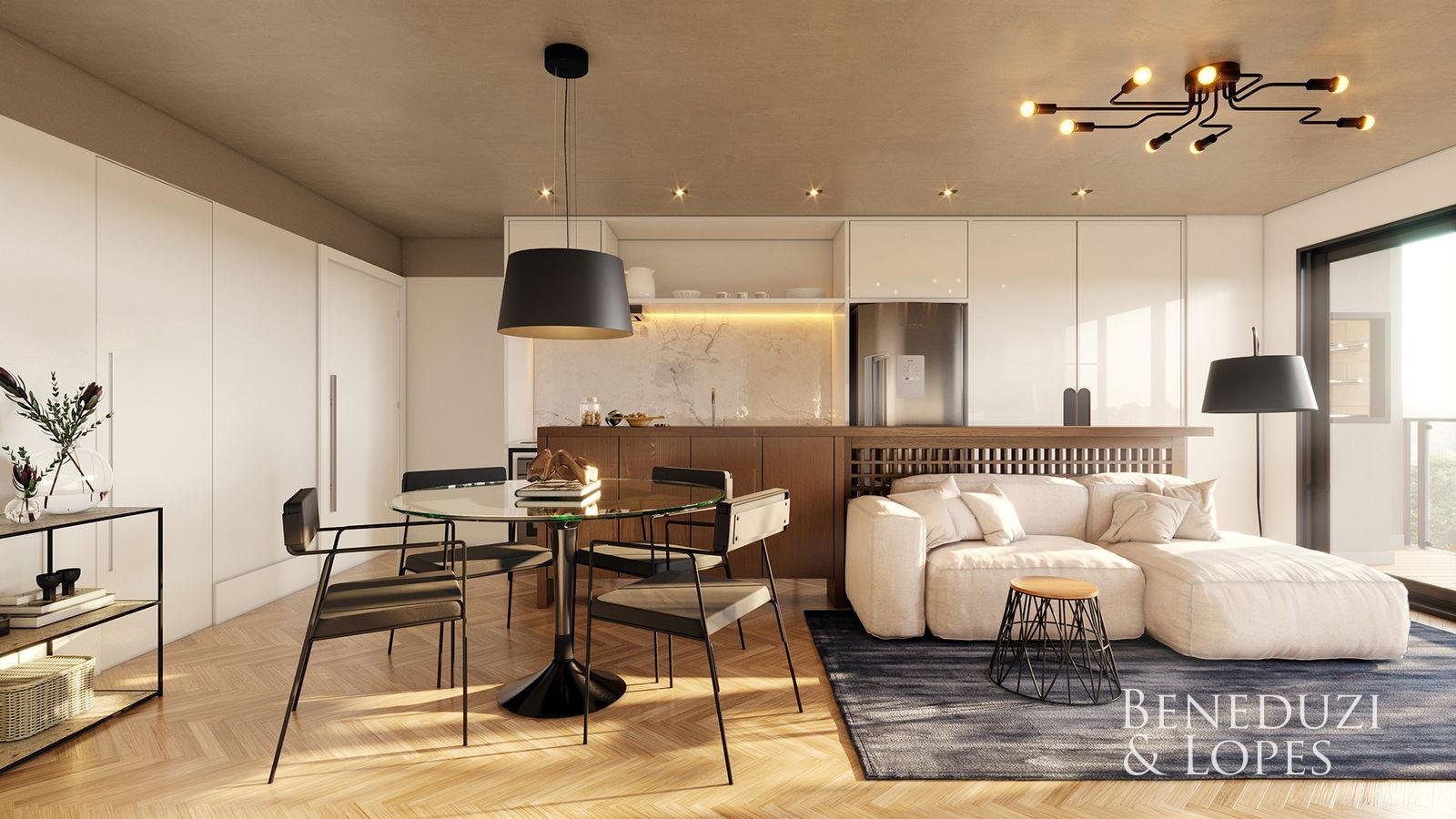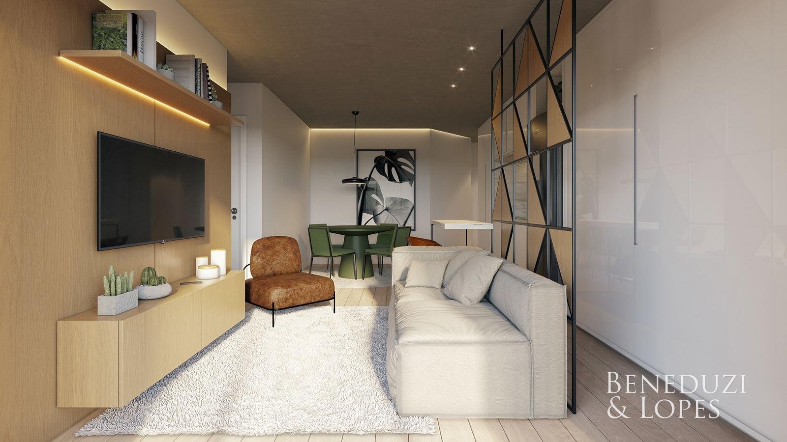 Apartamento com living integrado, sala de estar e sala de…