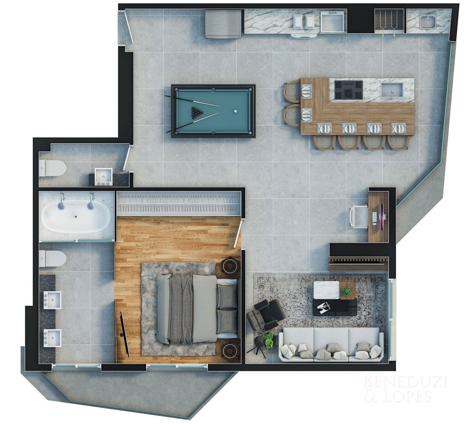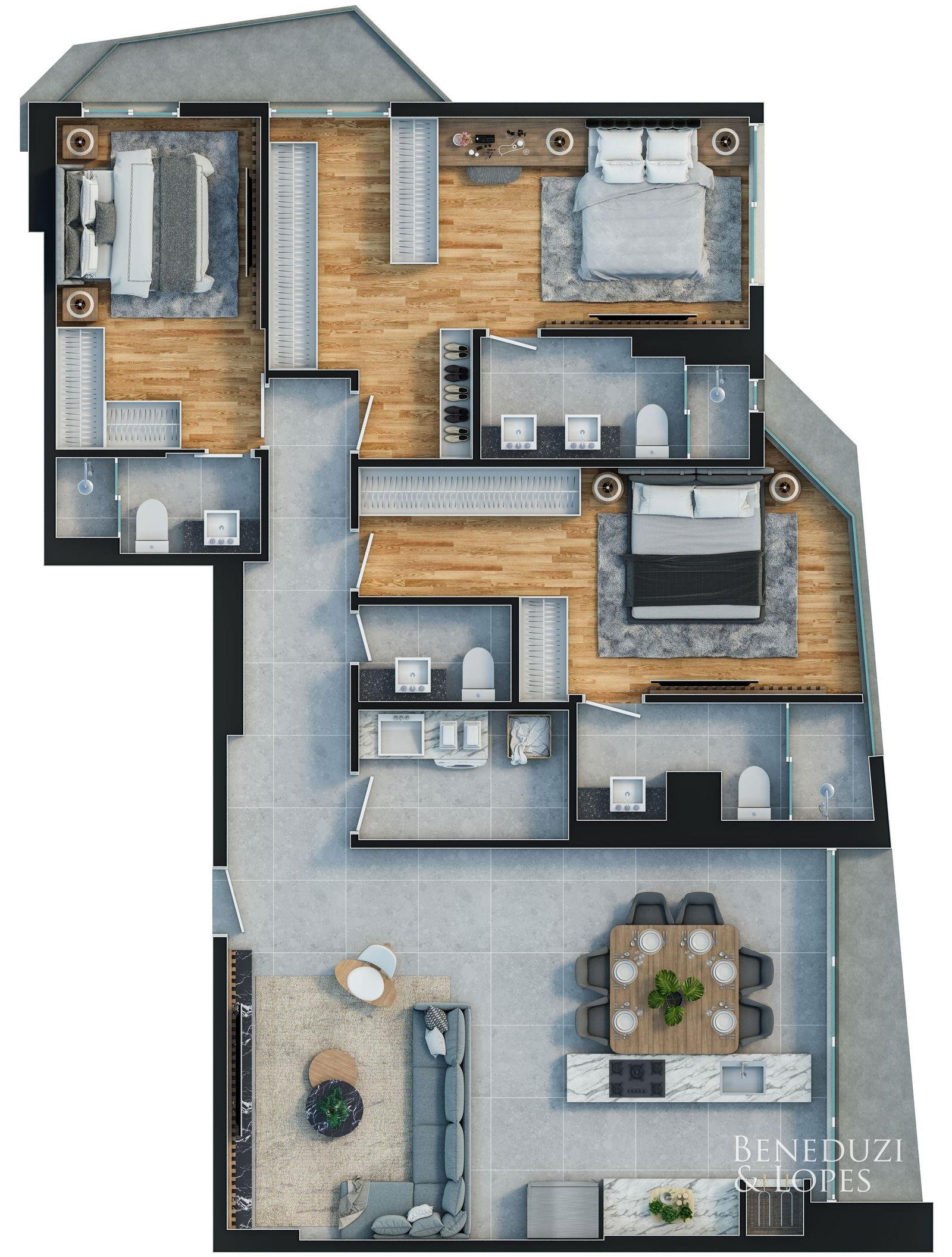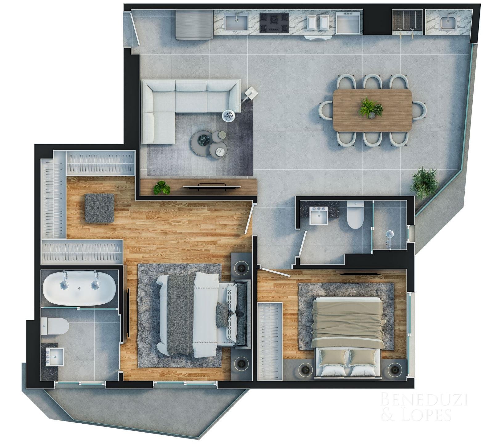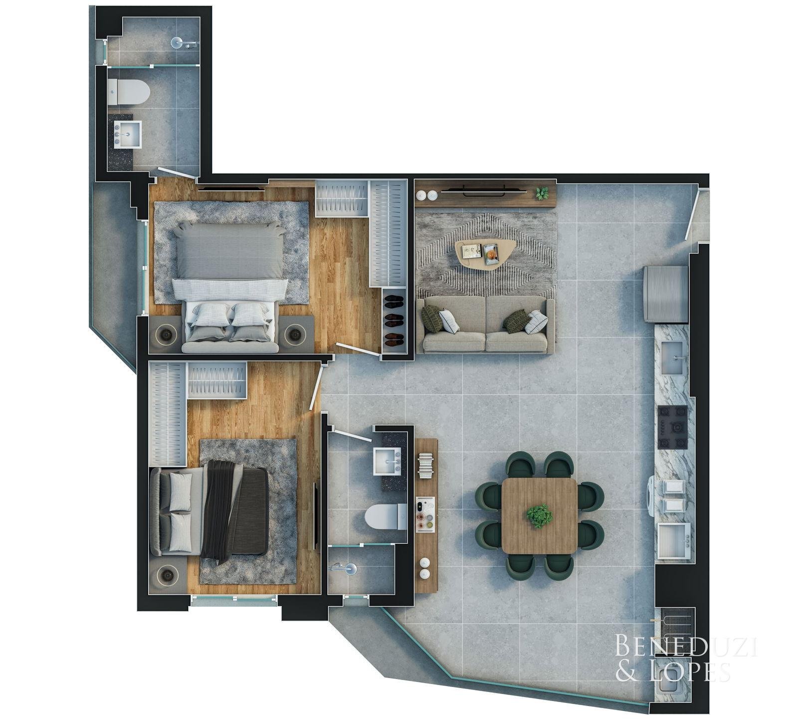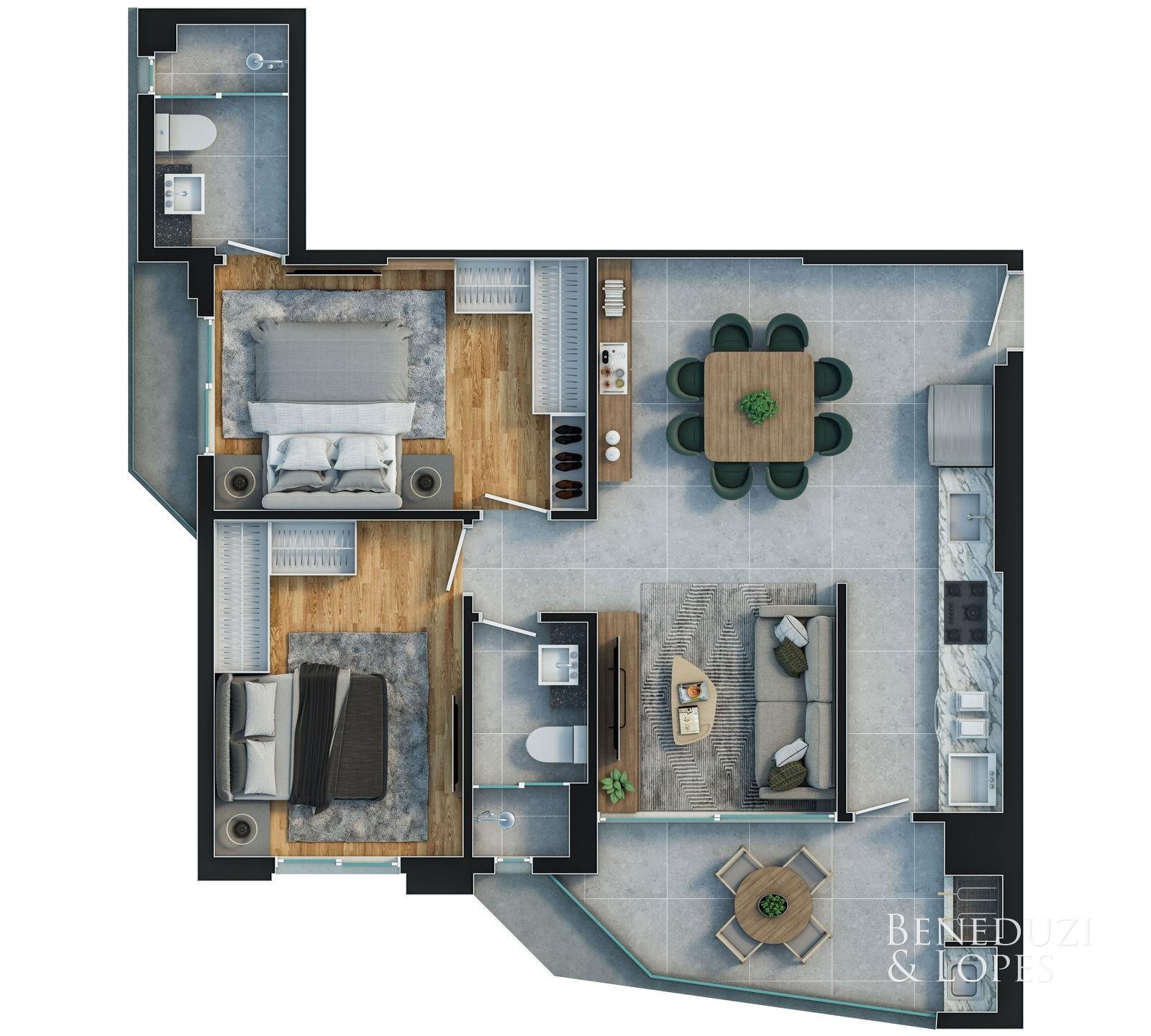 Apartamento com plantas flexíveis, com opções de 1, 2, 3 e 4 dormitórios, atendendo diferentes perfis de moradia e investimento.