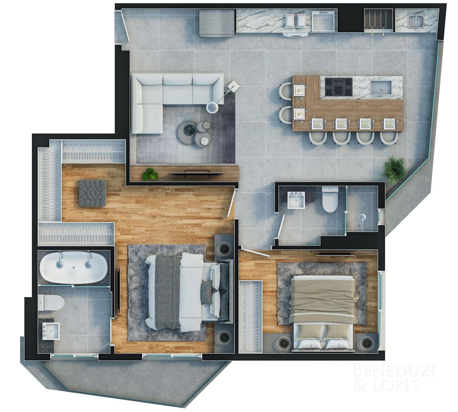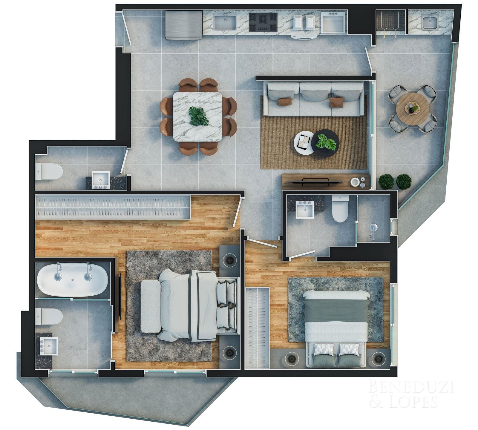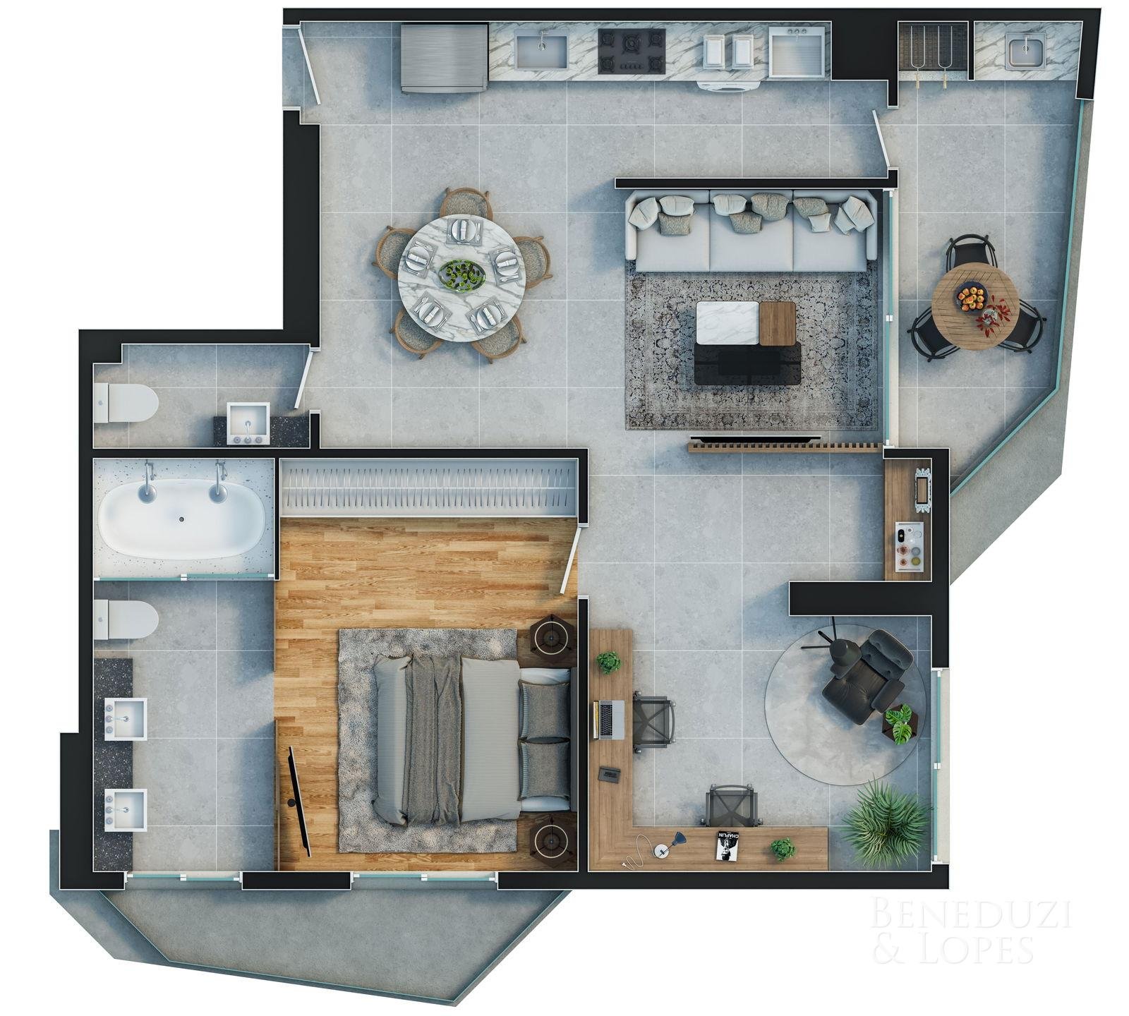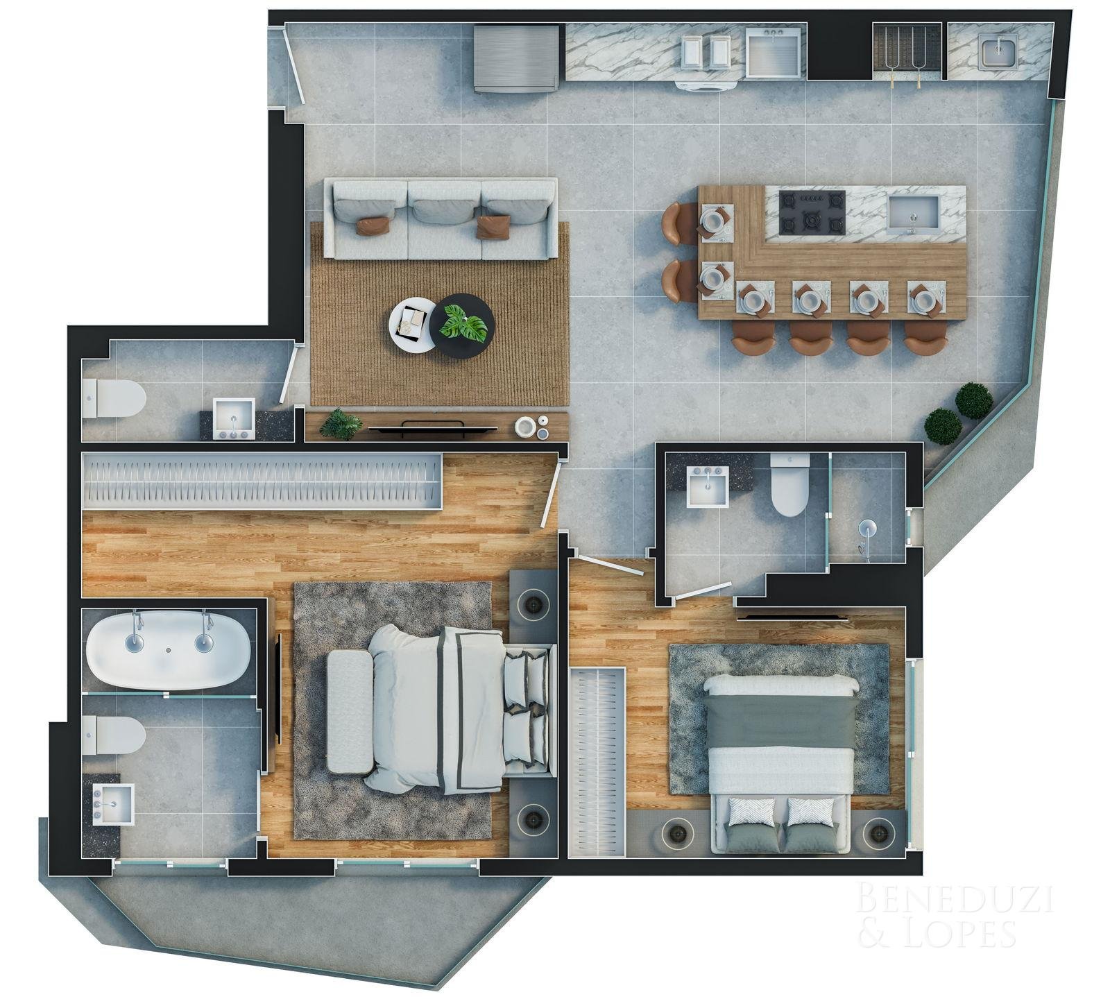 Apartamento com plantas flexíveis, com opções de 1, 2, 3 e 4 dormitórios, atendendo diferentes perfis de moradia e investimento.
