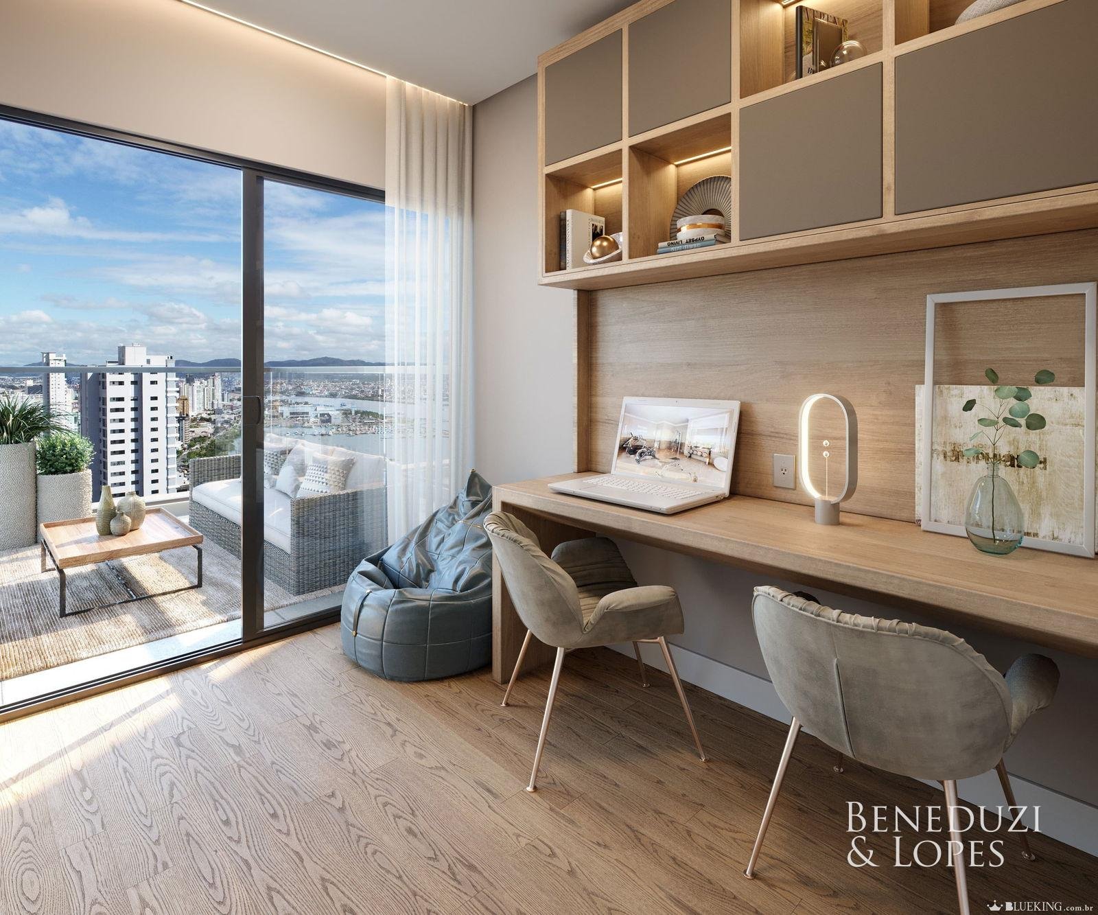 Apartamento com home office, living integrado, sala de estar e…