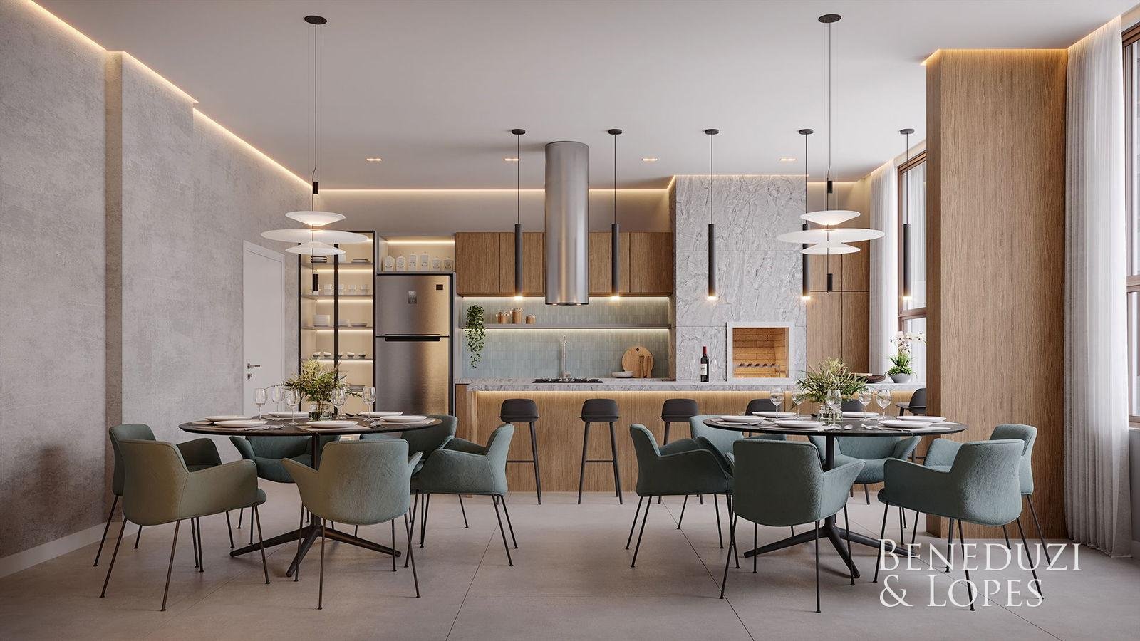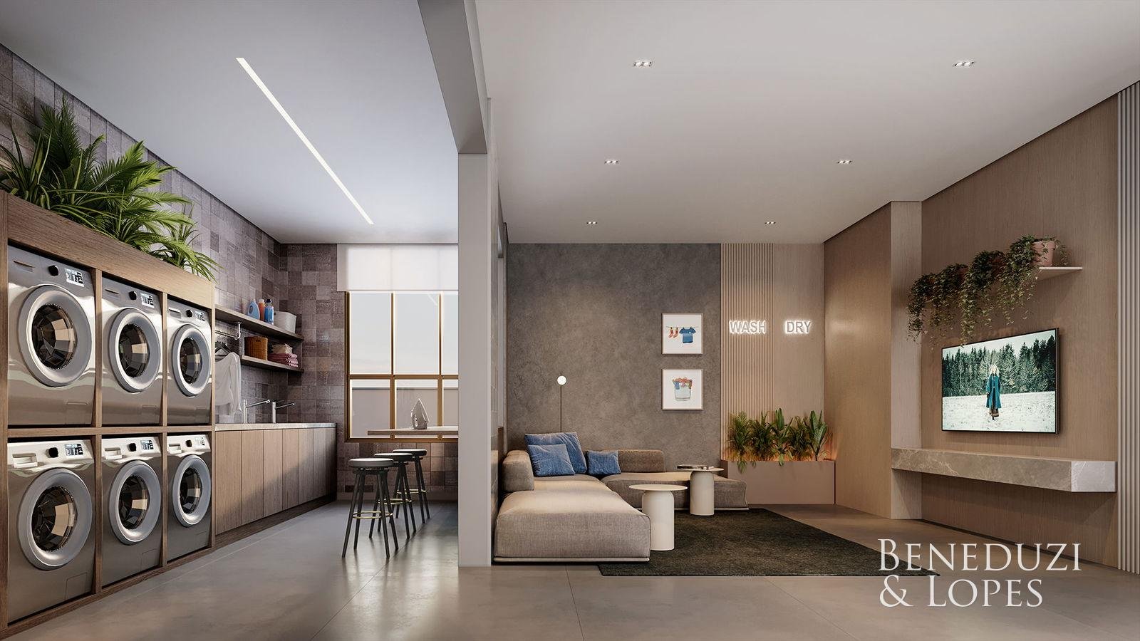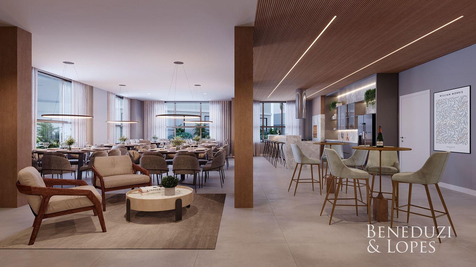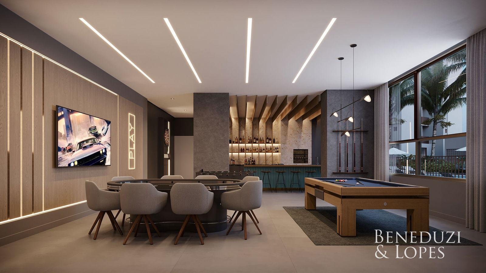 A unidade dispõe de espera para split, acabamento em gesso e porcelanato, além de hidrômetro e gás individuais, interfone e infraestrutura para TV a cabo, internet e telefone, garantindo comodidade e bom padrão construtivo. Possui ainda esquadrias em alumínio, portas e rodapés brancos, cerâmica nas paredes de cozinha e banheiros e teto rebaixado em gesso, agregando qualidade aos acabamentos.