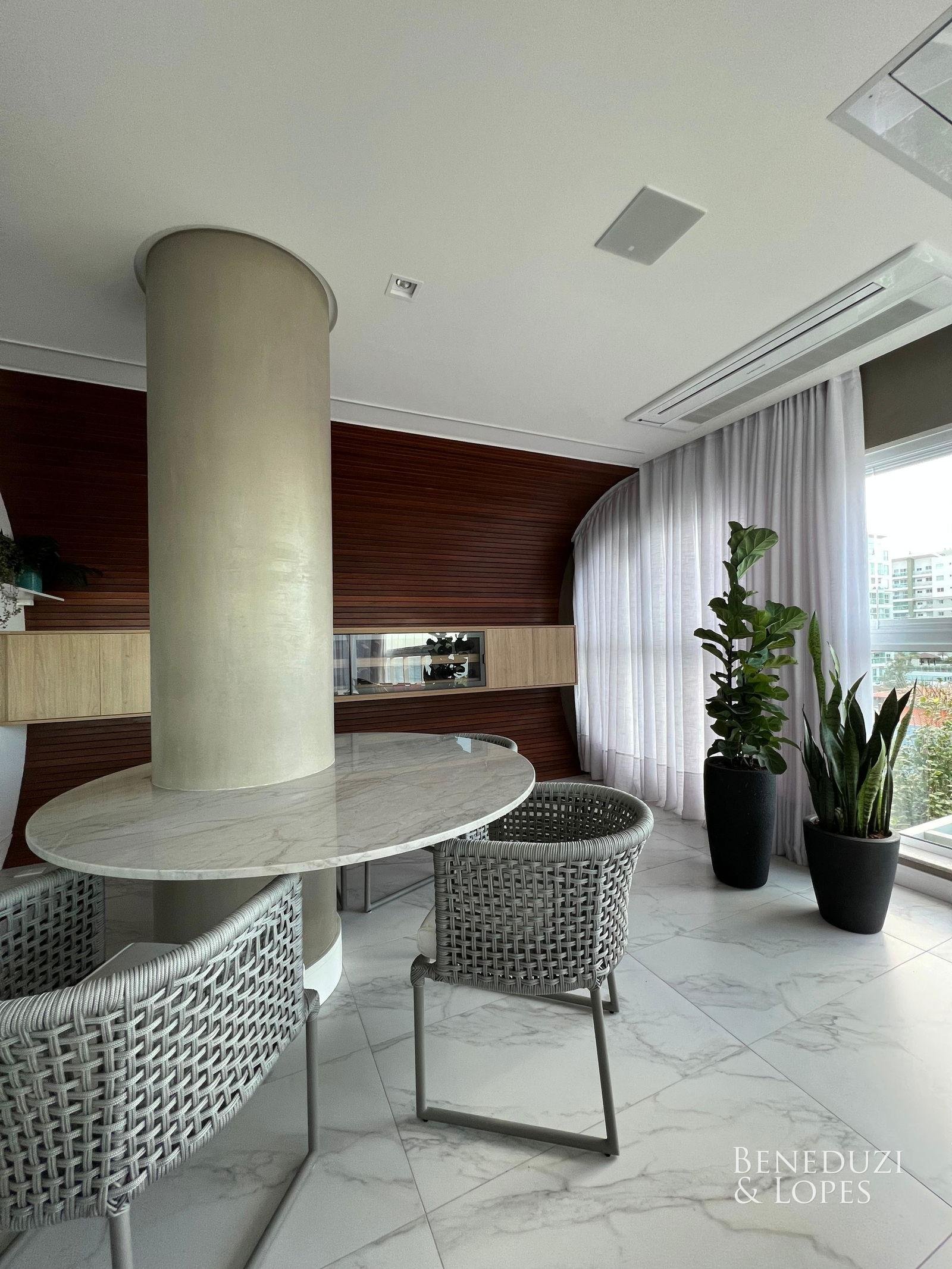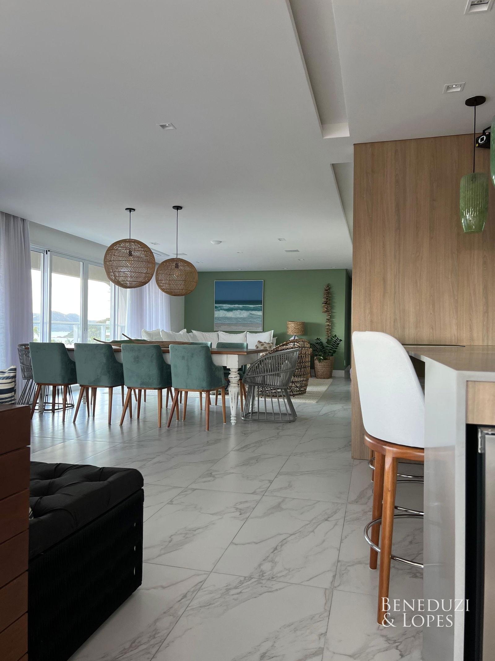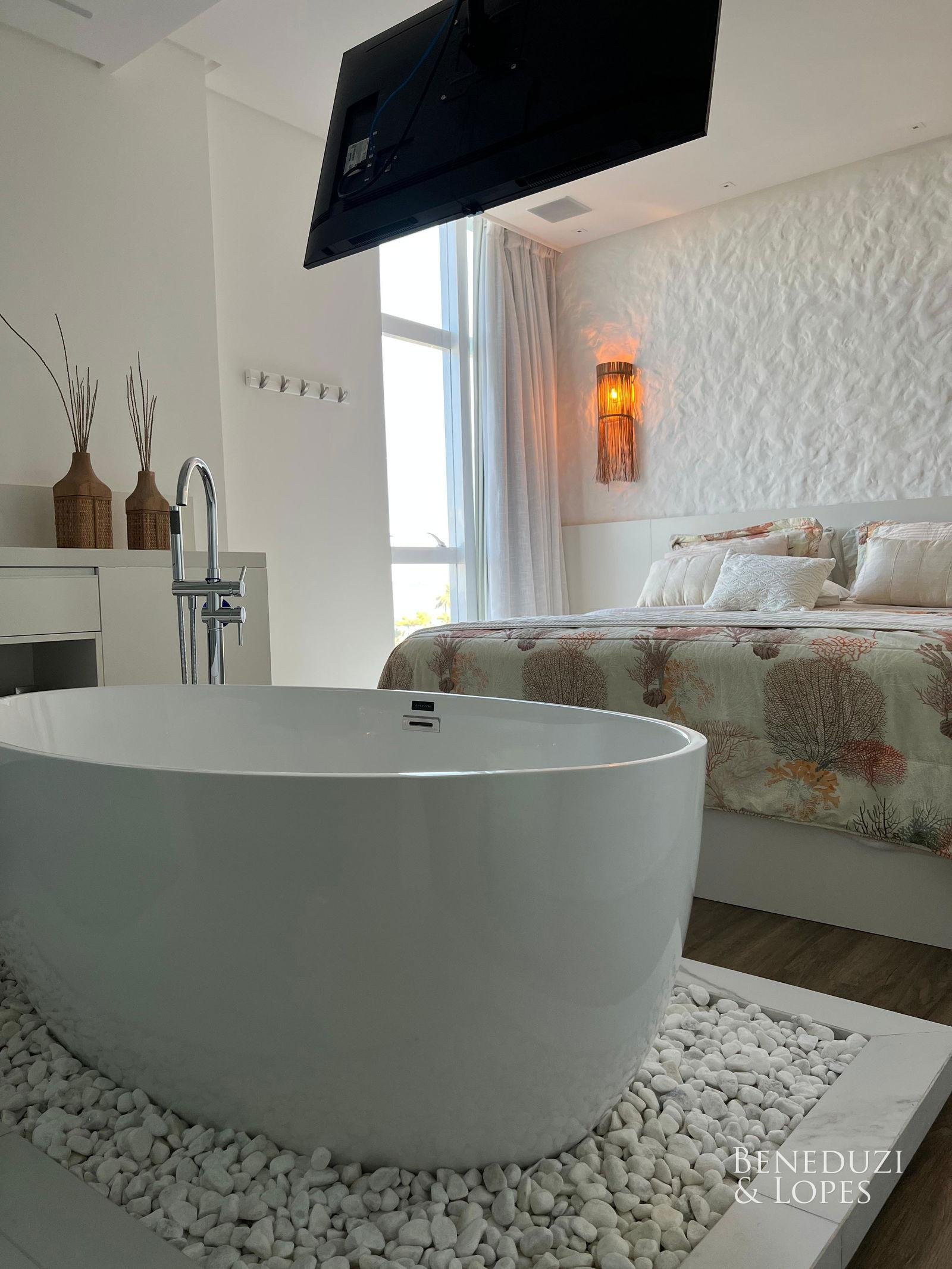 Apartamento com suíte master com banheira, finamente mobiliado e decorado, oferecendo alto padrão de acabamento e sofisticação. Conta com sala de jantar, cozinha americana e varanda gourmet, ideal para momentos de lazer e convivência.