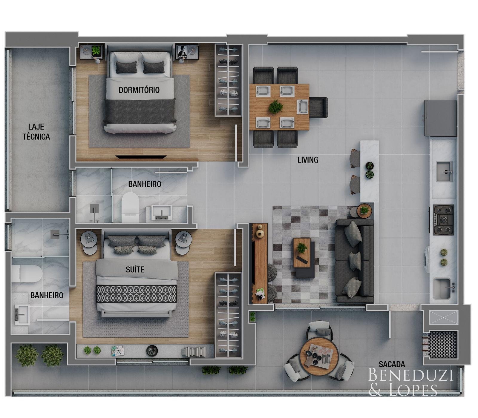 Apartamento com living integrado, sacada com churrasqueira a carvão e…