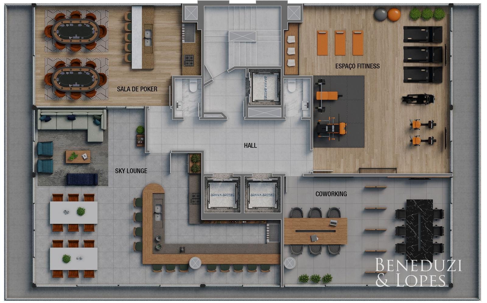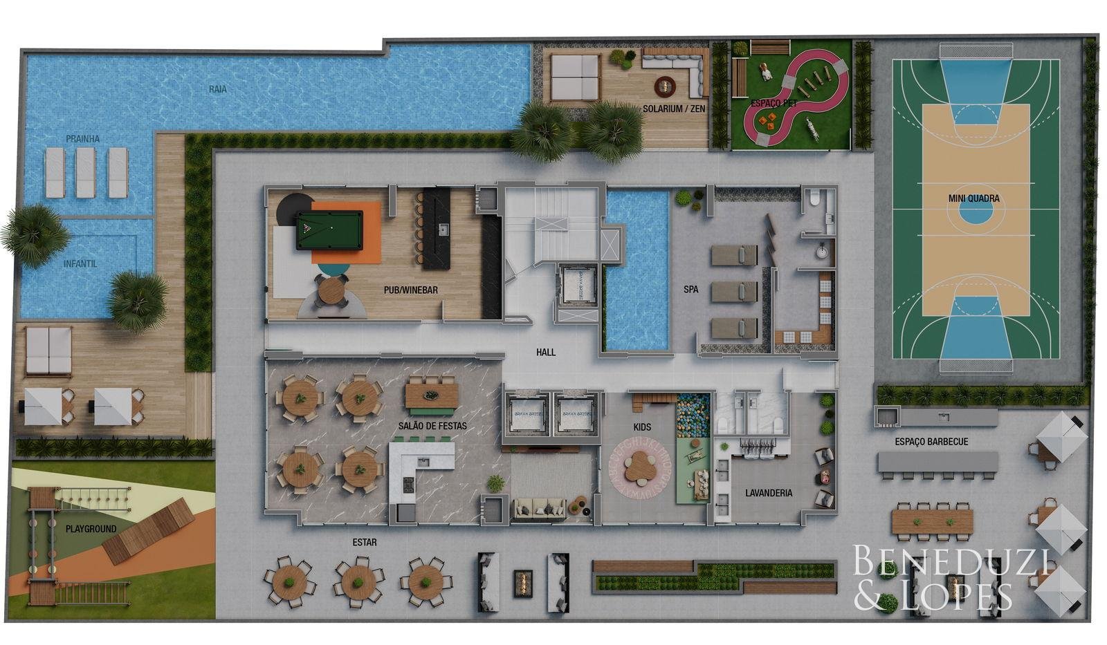 Playground Piscina Piscina adulto Reaproveitamento de água Elevador Rooftop Salão de festas Piscina infantil Pub Hall de entrada decorado e mobiliado Sala de jogos Interfone Sala de Reunião Academia Brinquedoteca