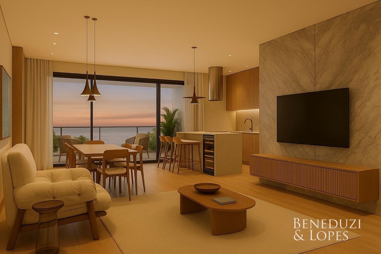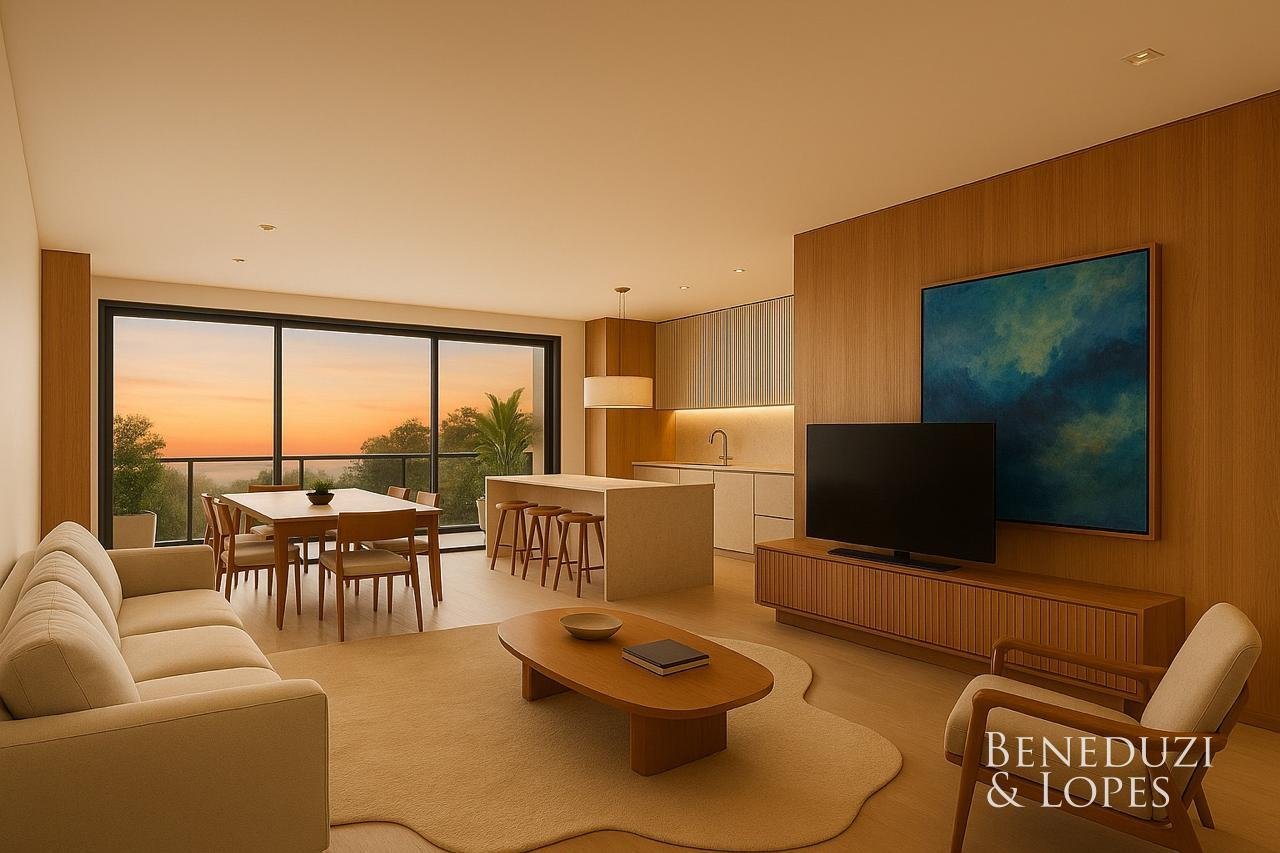 Apartamento com living integrado, sala de estar e sala de jantar, proporcionando ambientes amplos e bem distribuídos. Conta com lavabo, cozinha americana e área de serviço, além de sacada e varanda, com vista panorâmica, ideal para quem busca conforto e sofisticação.