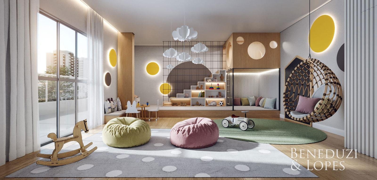 Piscina Elevador Brinquedoteca Academia Salão de festas Hall de entrada decorado 3 Elevadores Espaços de lazer mobiliados Espaço gourmet Salão de jogos Academia Espaços de lazer mobiliados Piscina externa Salão de festas