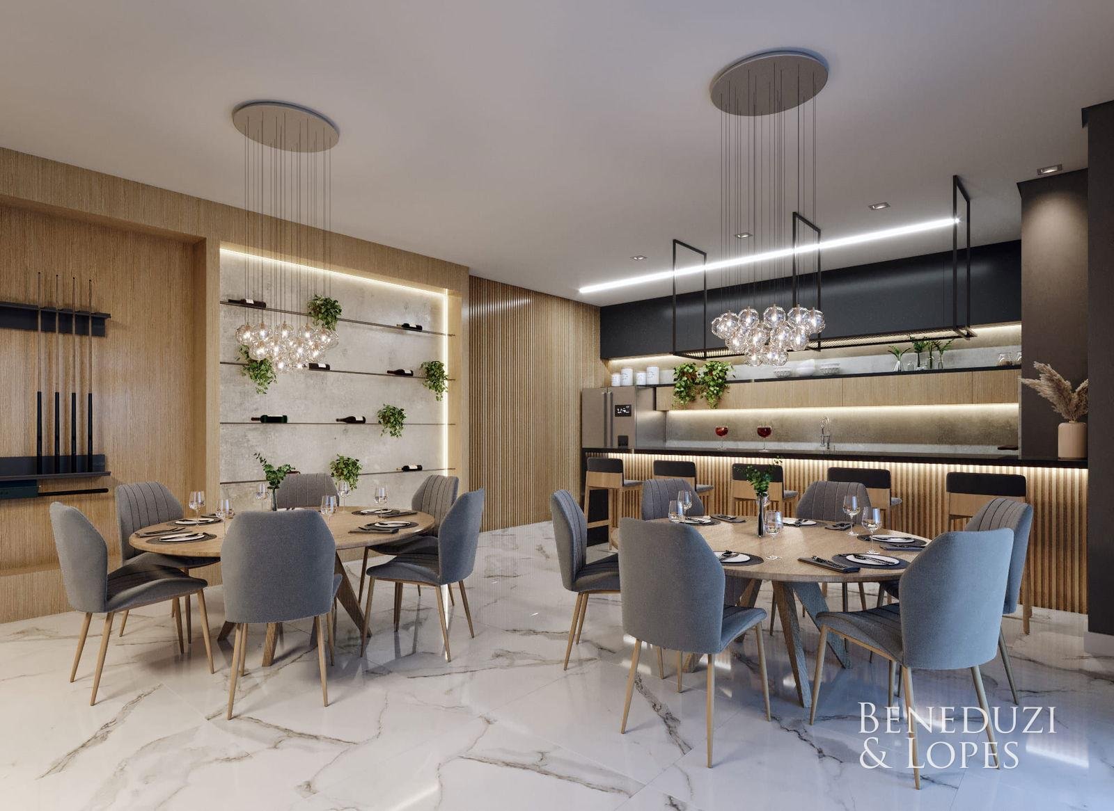 Sala de Estar Cozinha Lavabo Área de Serviço Finais 02 e 03 com 2 Suítes Cozinha Estar/jantar Sacada com churrasqueira Lavabo 2 Vagas de garagem Área privativa 95m²