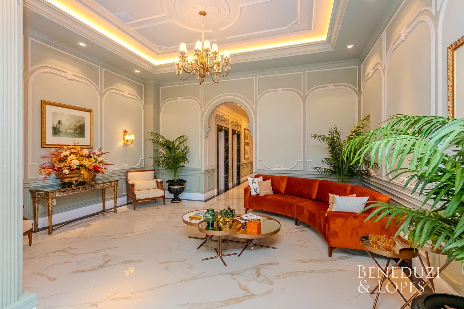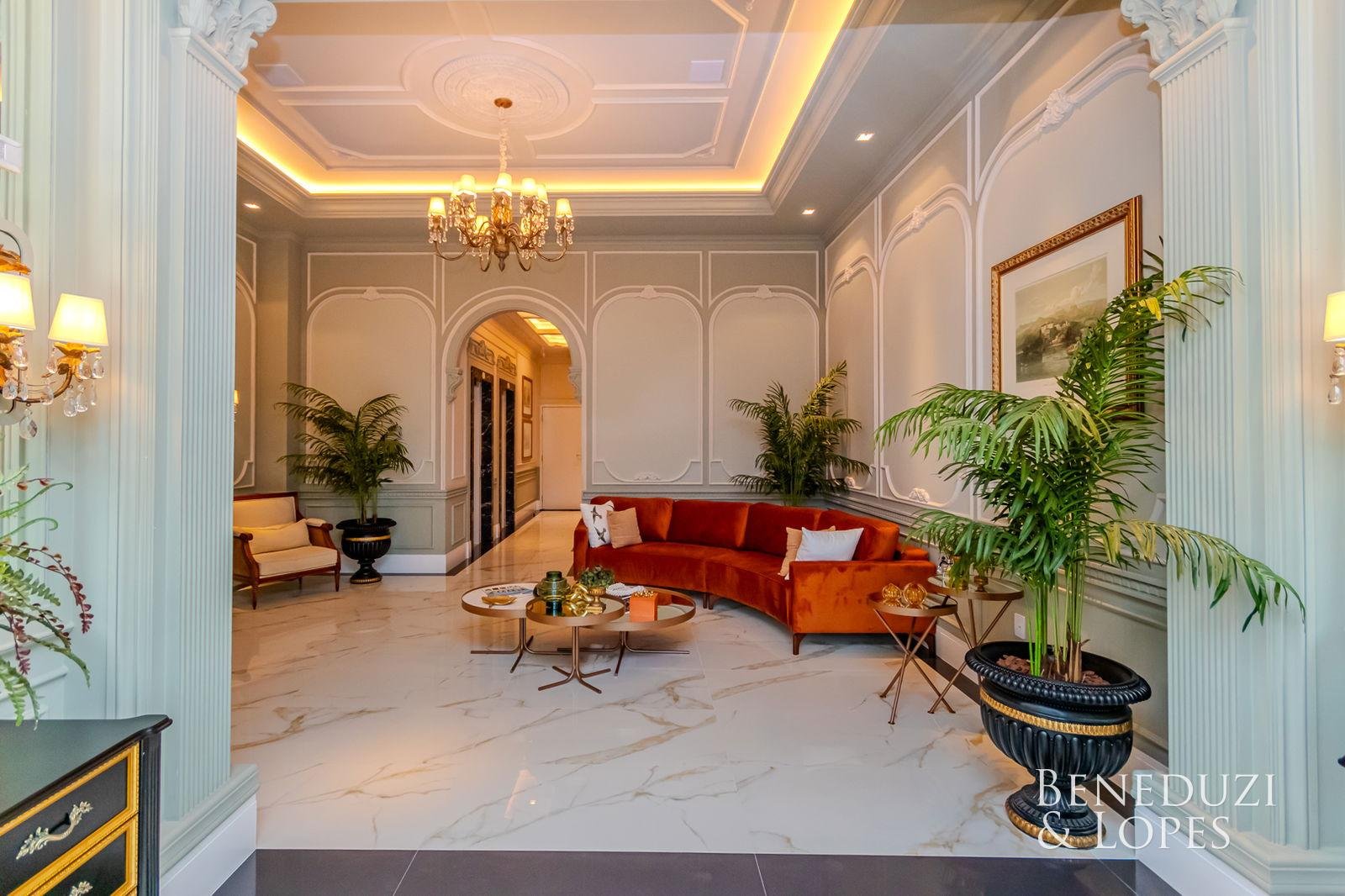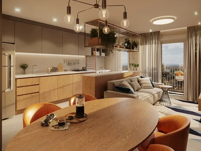 Apartamento com living integrado, sala de estar, sala de jantar e lavabo, proporcionando ambientes amplos, bem distribuídos e funcionais. Conta com cozinha, sacada, varanda e varanda gourmet com churrasqueira, ideais para momentos de convivência e lazer, além de vista panorâmica, que valoriza a iluminação natural e a sensação de amplitude.