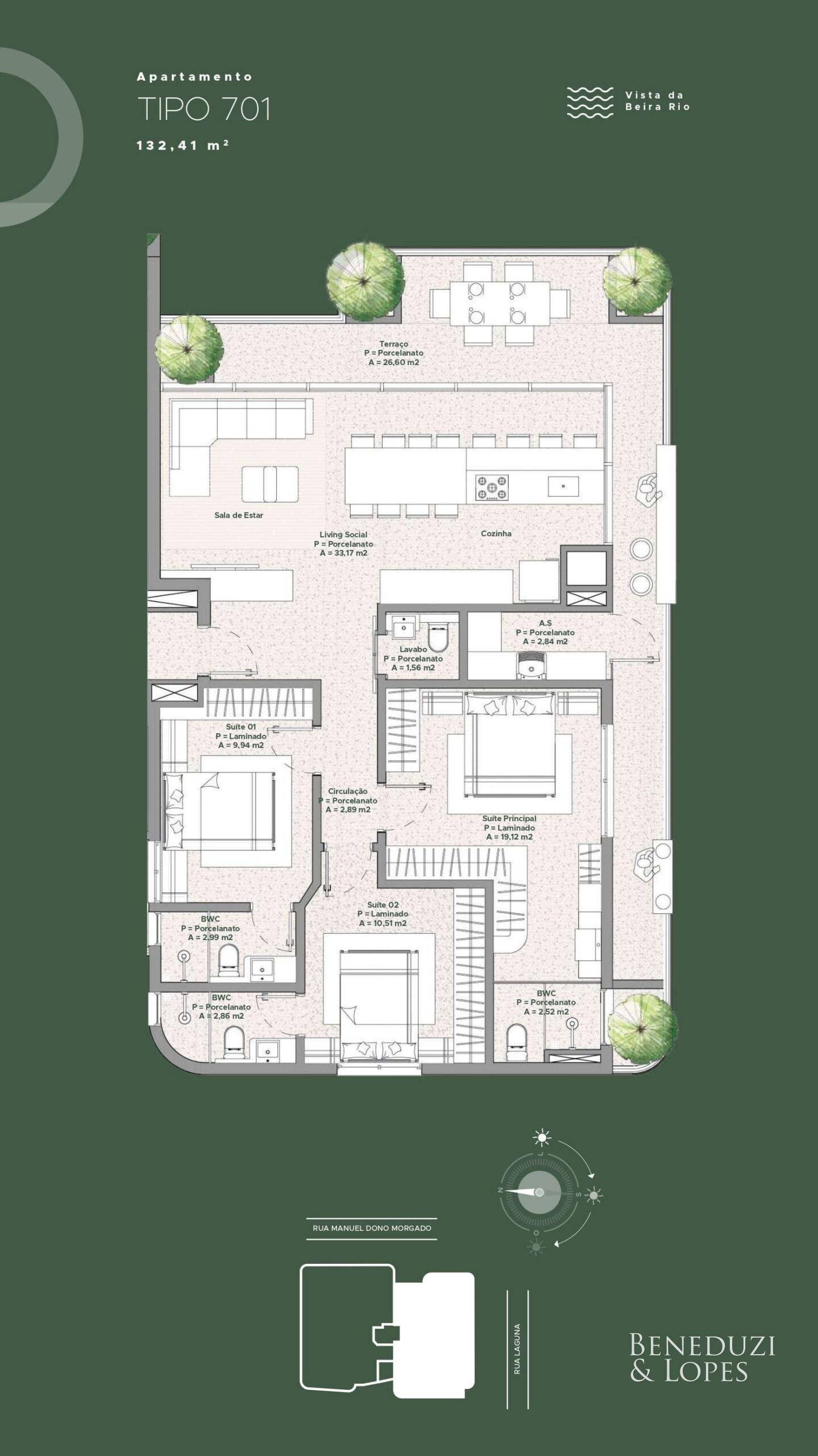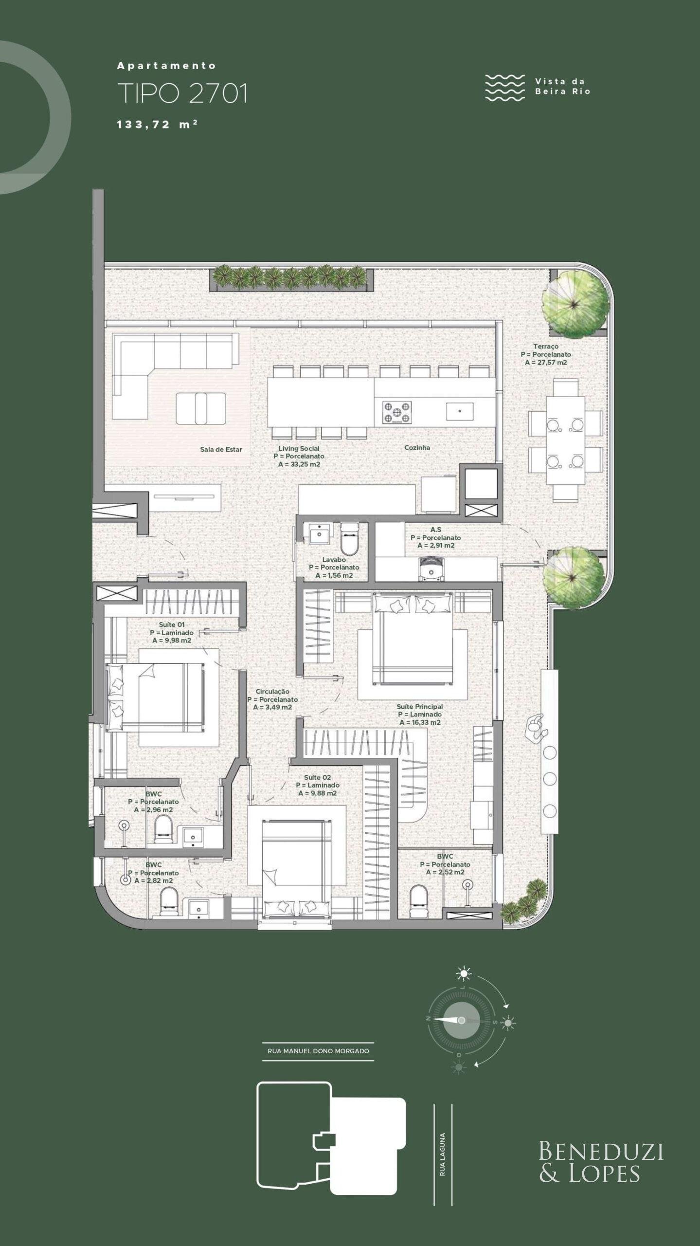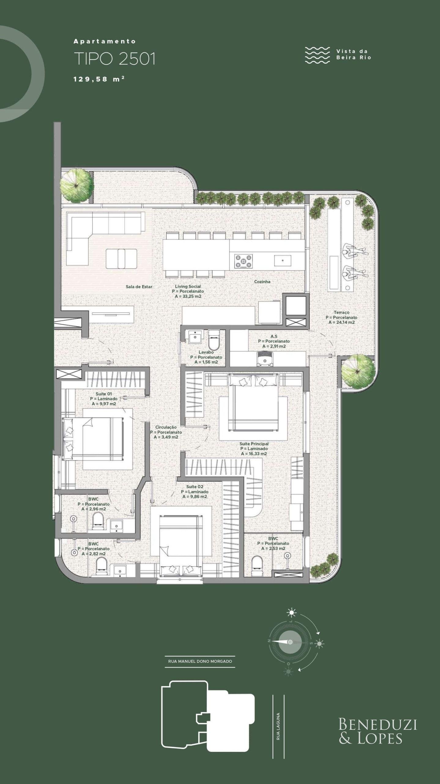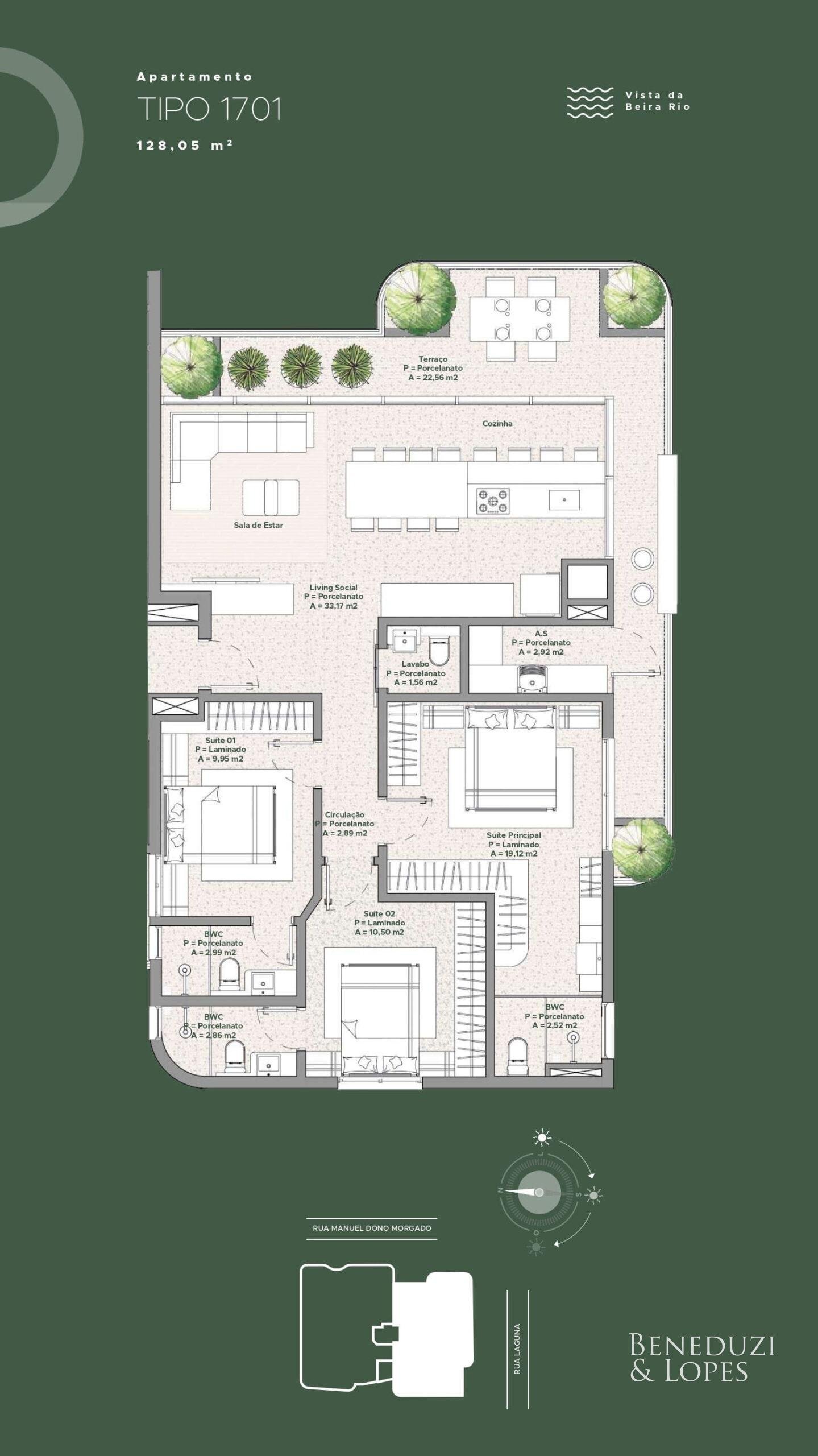 Apartamentos com 03 suítes, além de opções exclusivas como 03 unidades duplex com 04 suítes e 02 coberturas duplex, com plantas amplas e bem distribuídas.
