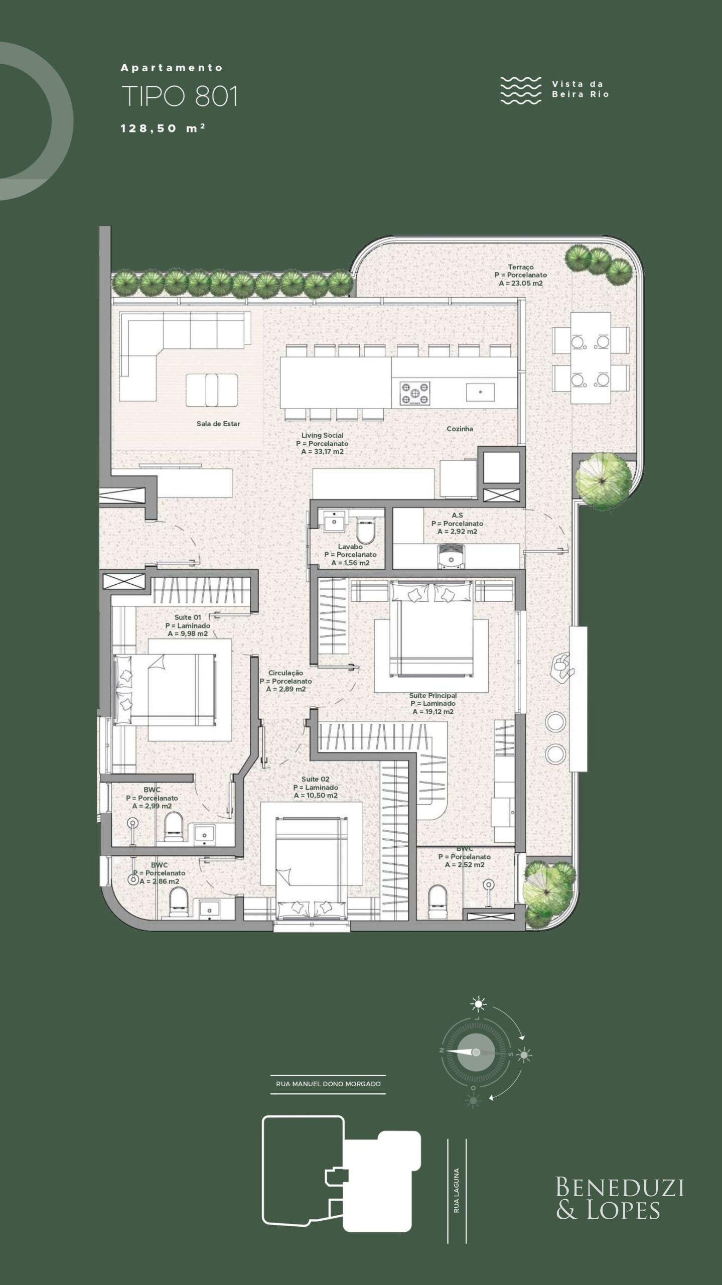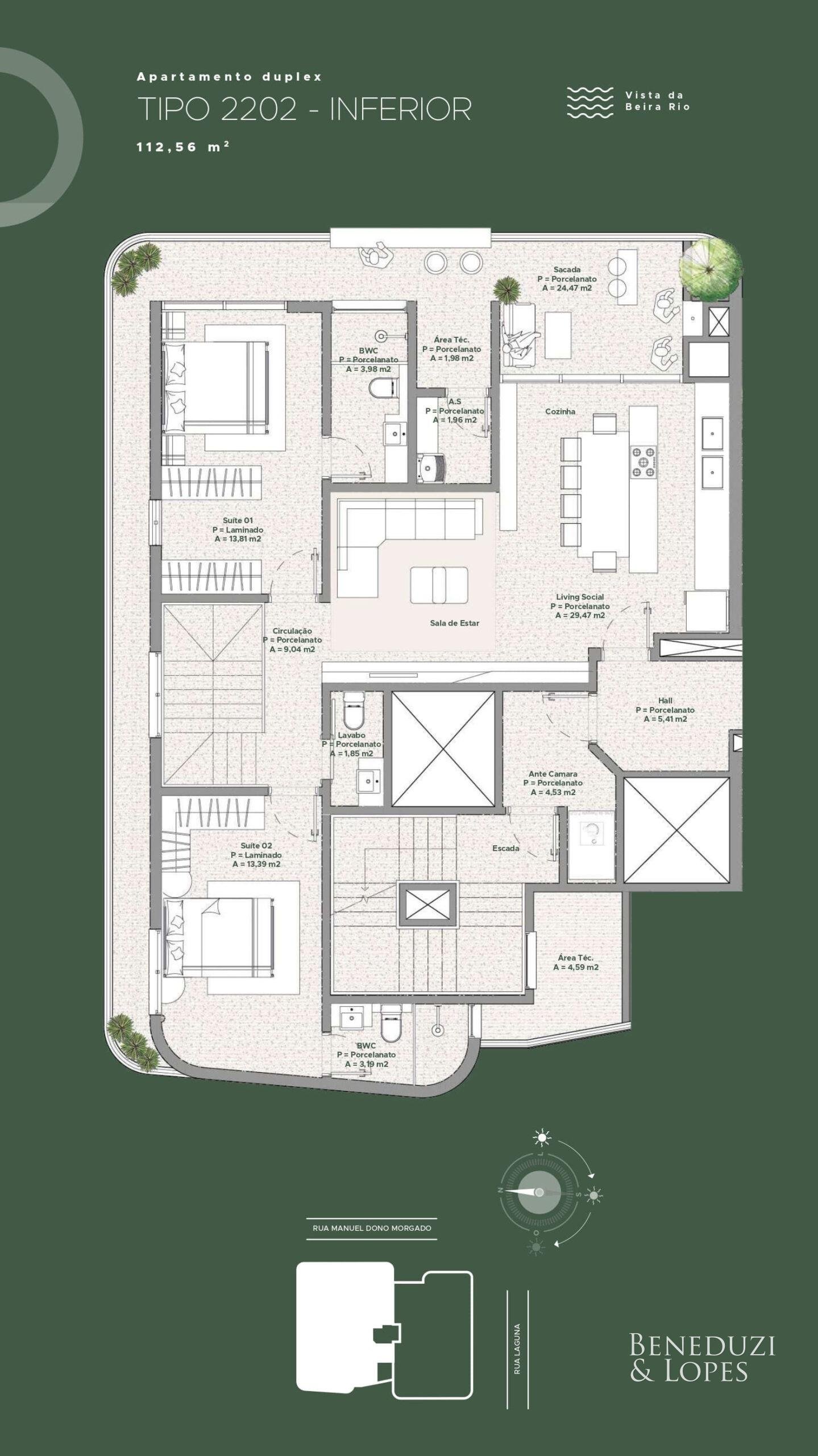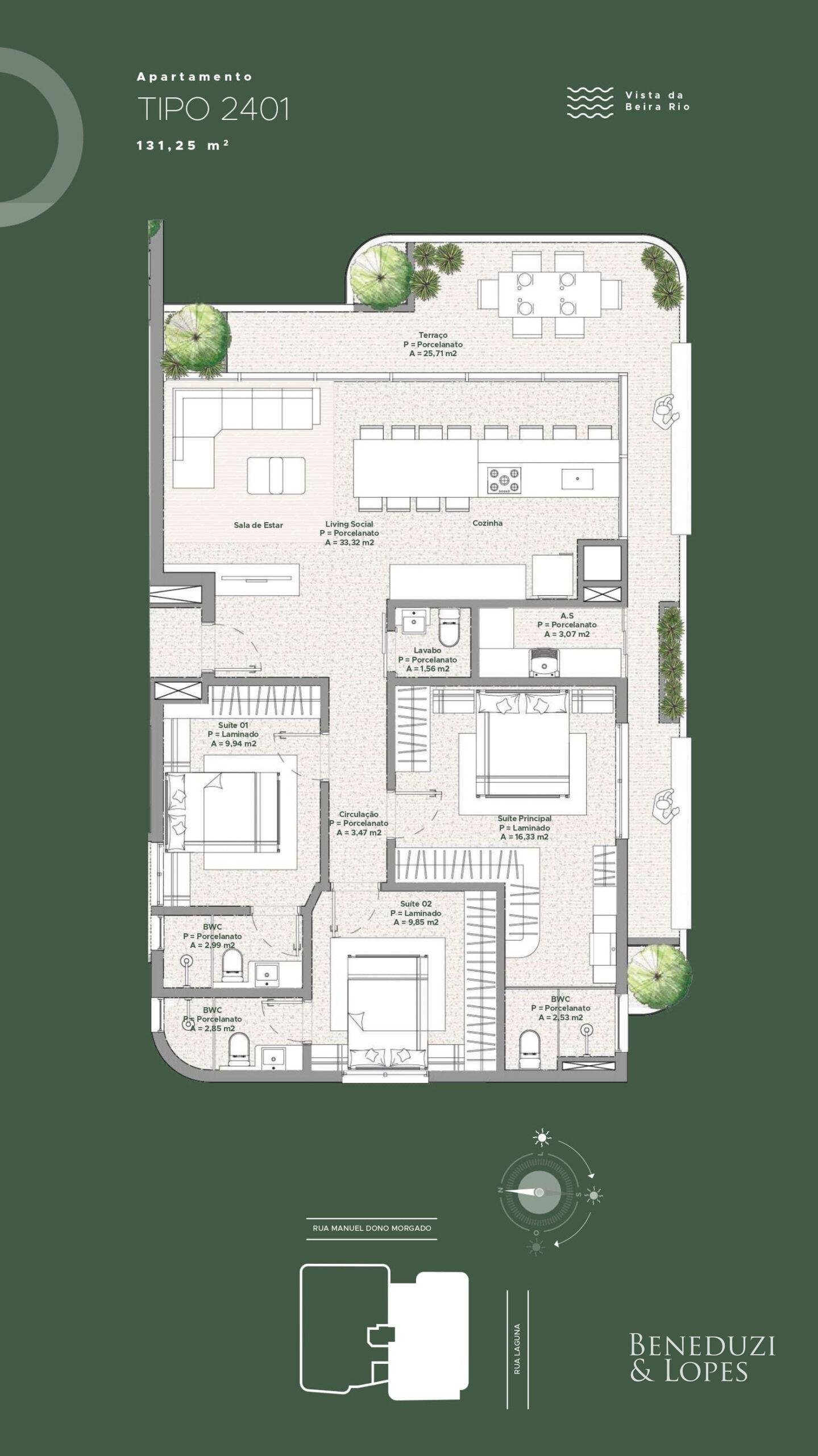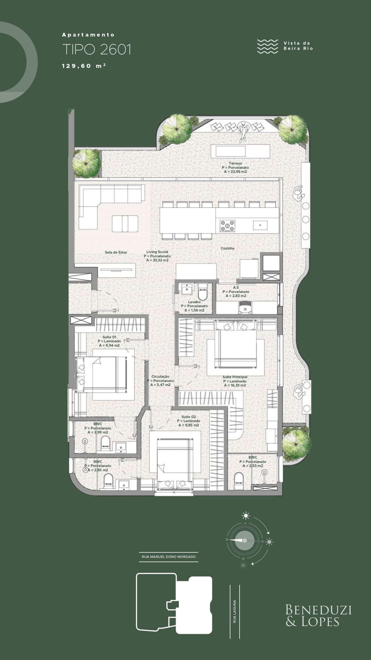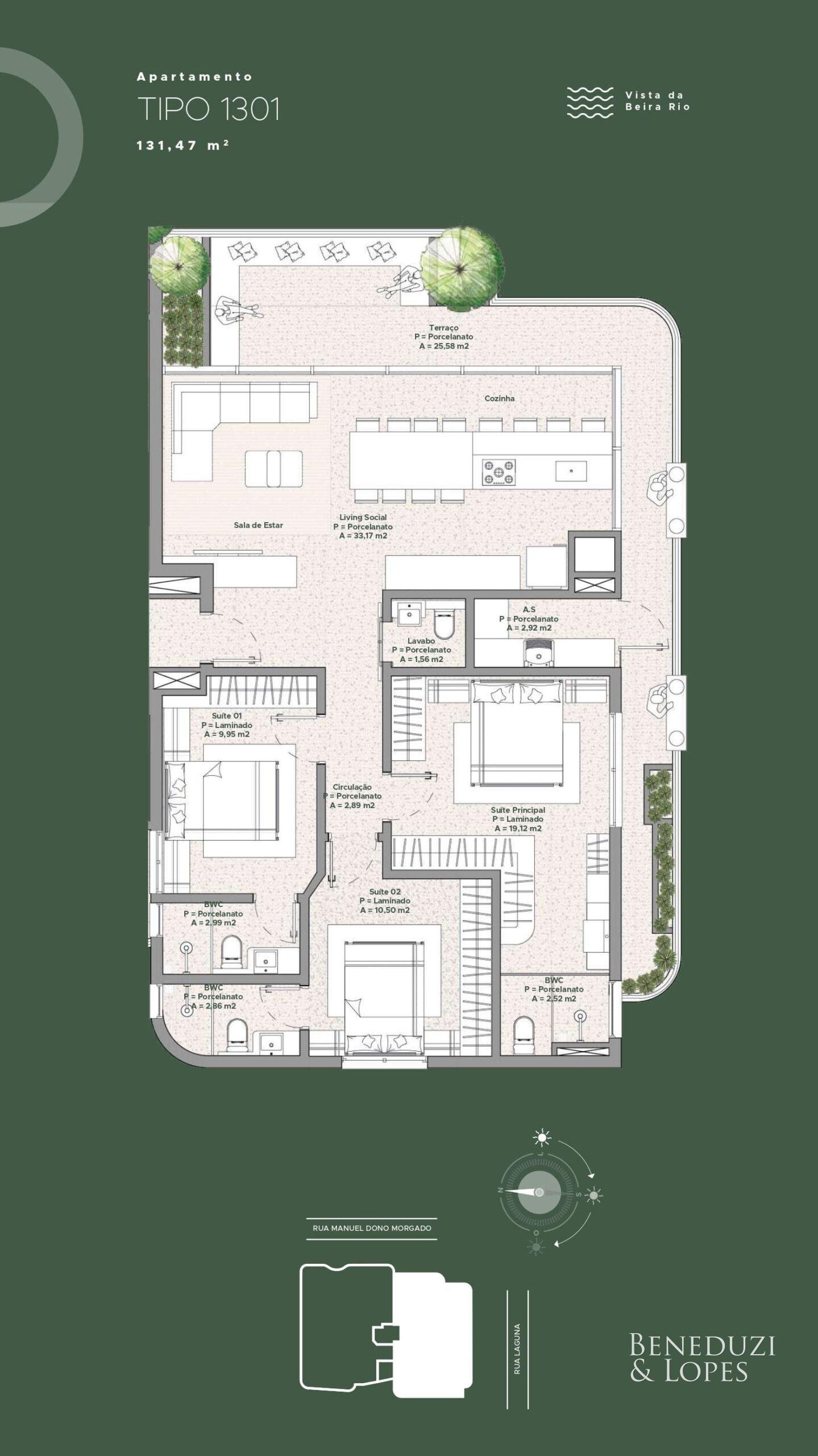 Apartamentos com 03 suítes, além de opções exclusivas como 03 unidades duplex com 04 suítes e 02 coberturas duplex, com plantas amplas e bem distribuídas.