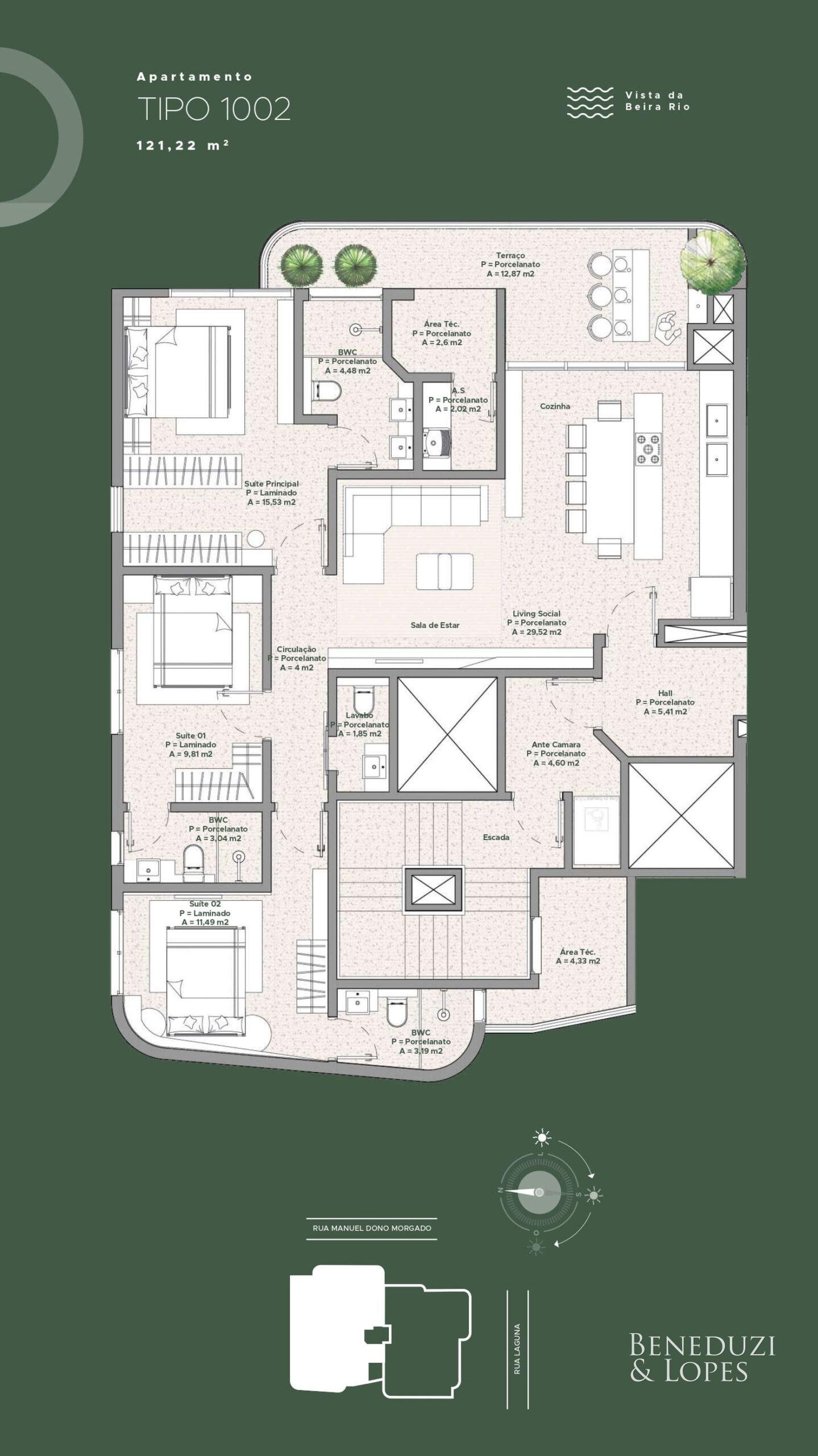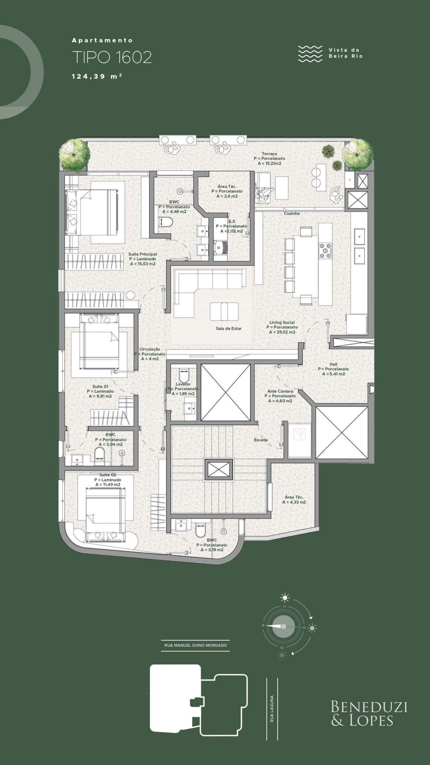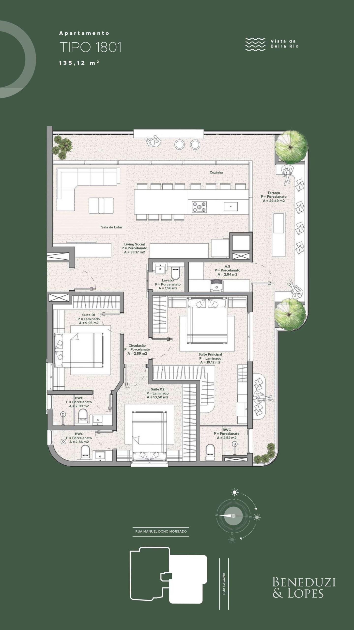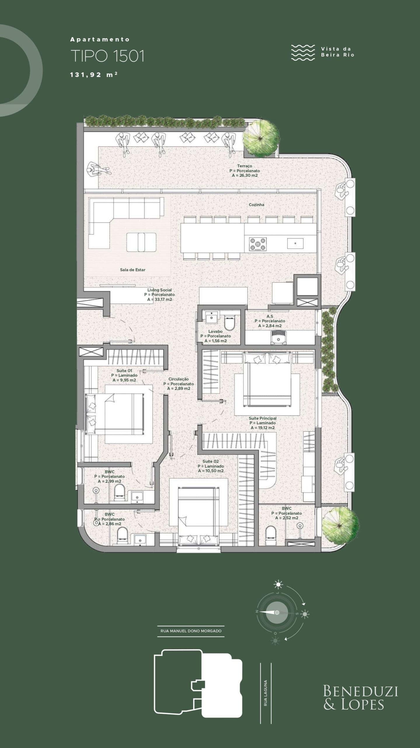 As unidades contam com metragens que variam de 120m² a 180m², oferecendo espaços generosos, ideais para quem busca conforto, sofisticação e qualidade de vida.