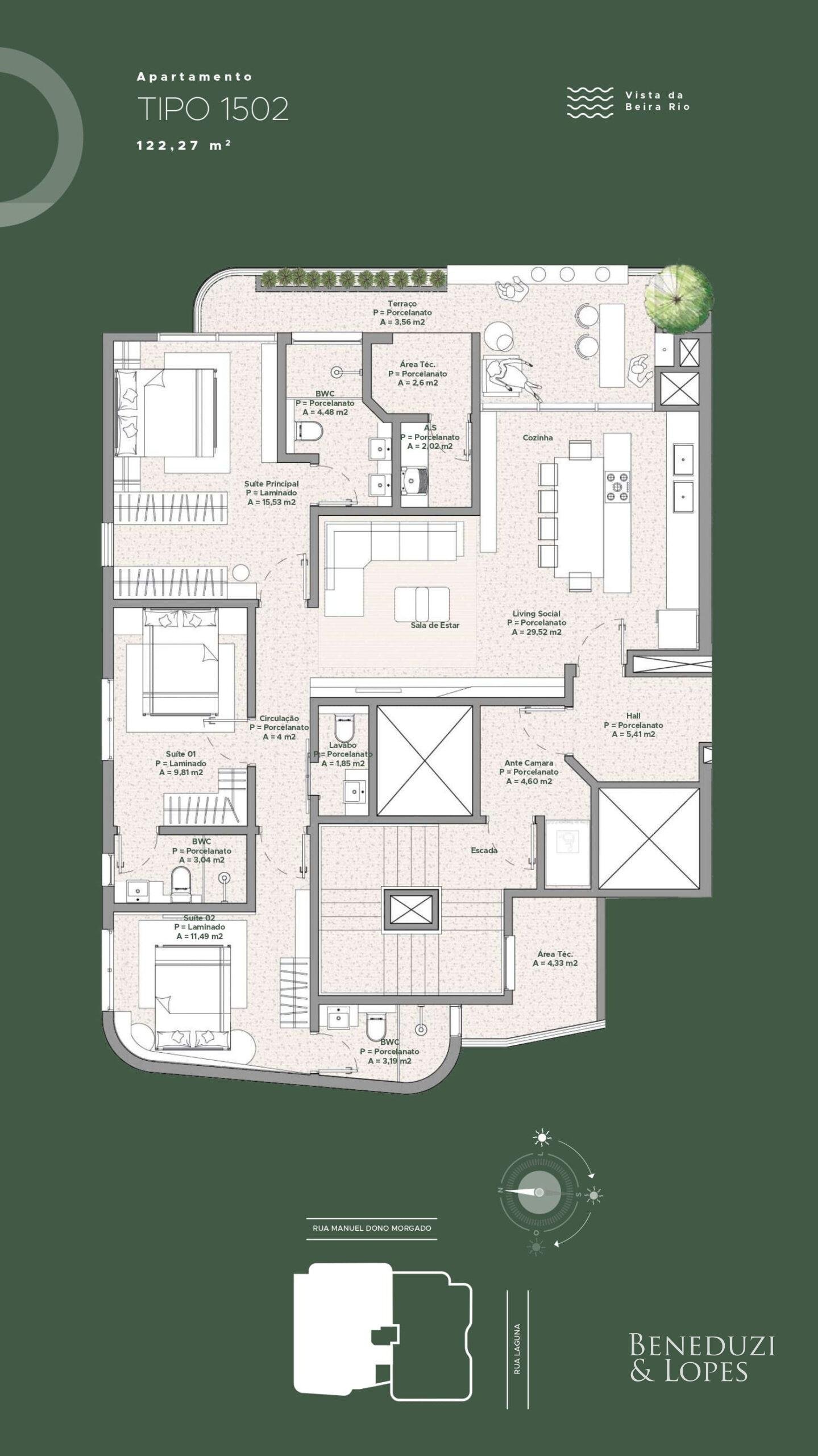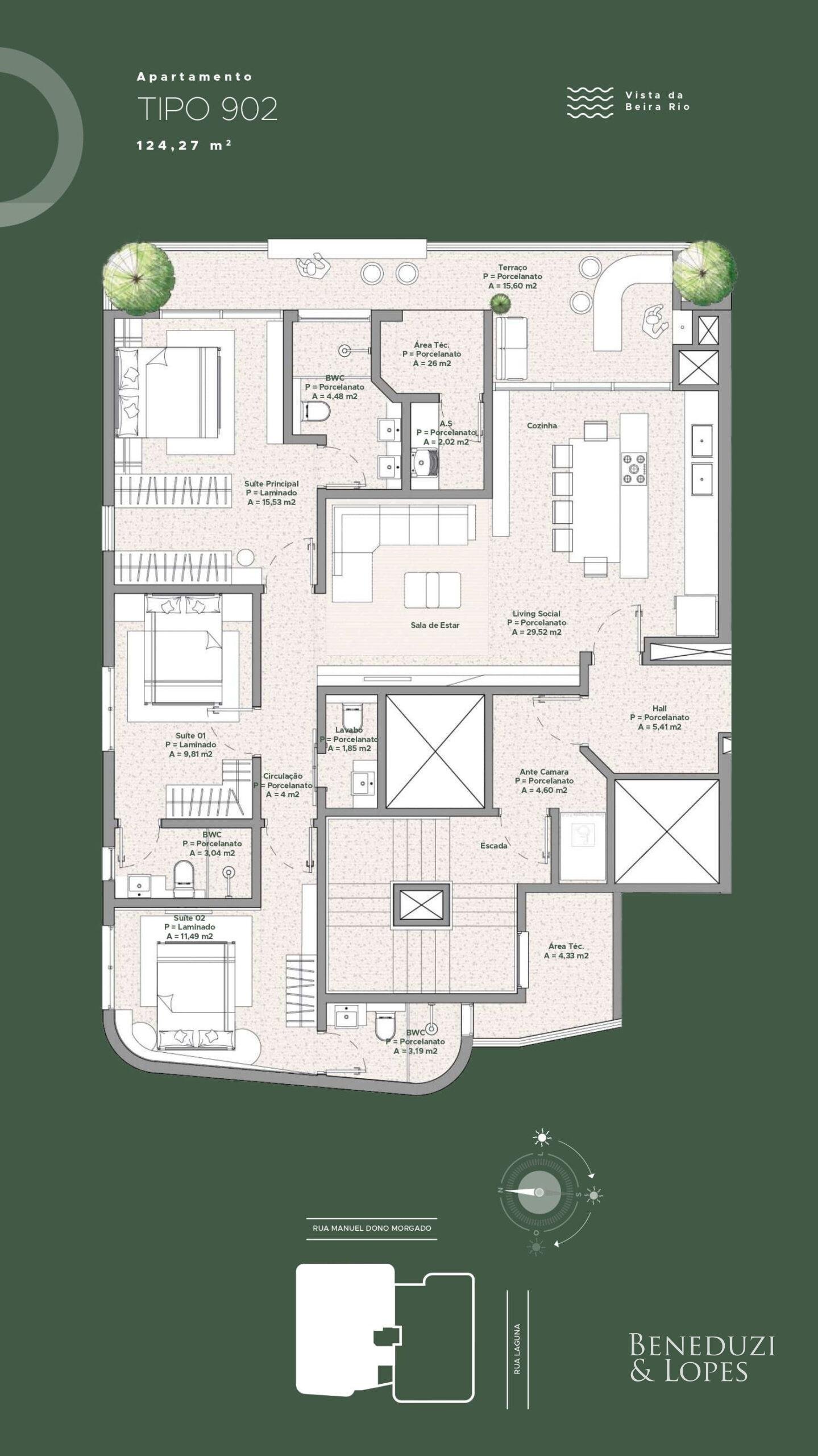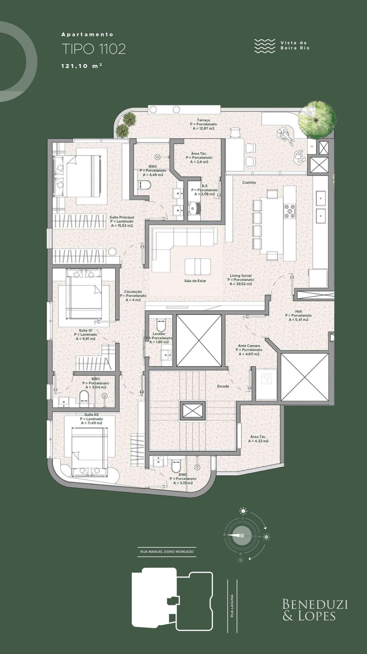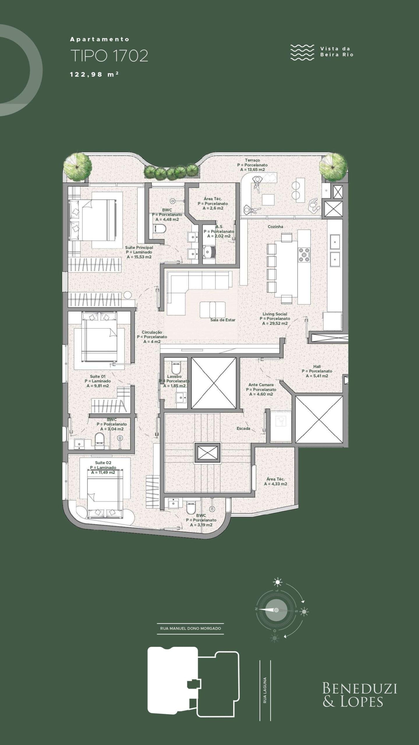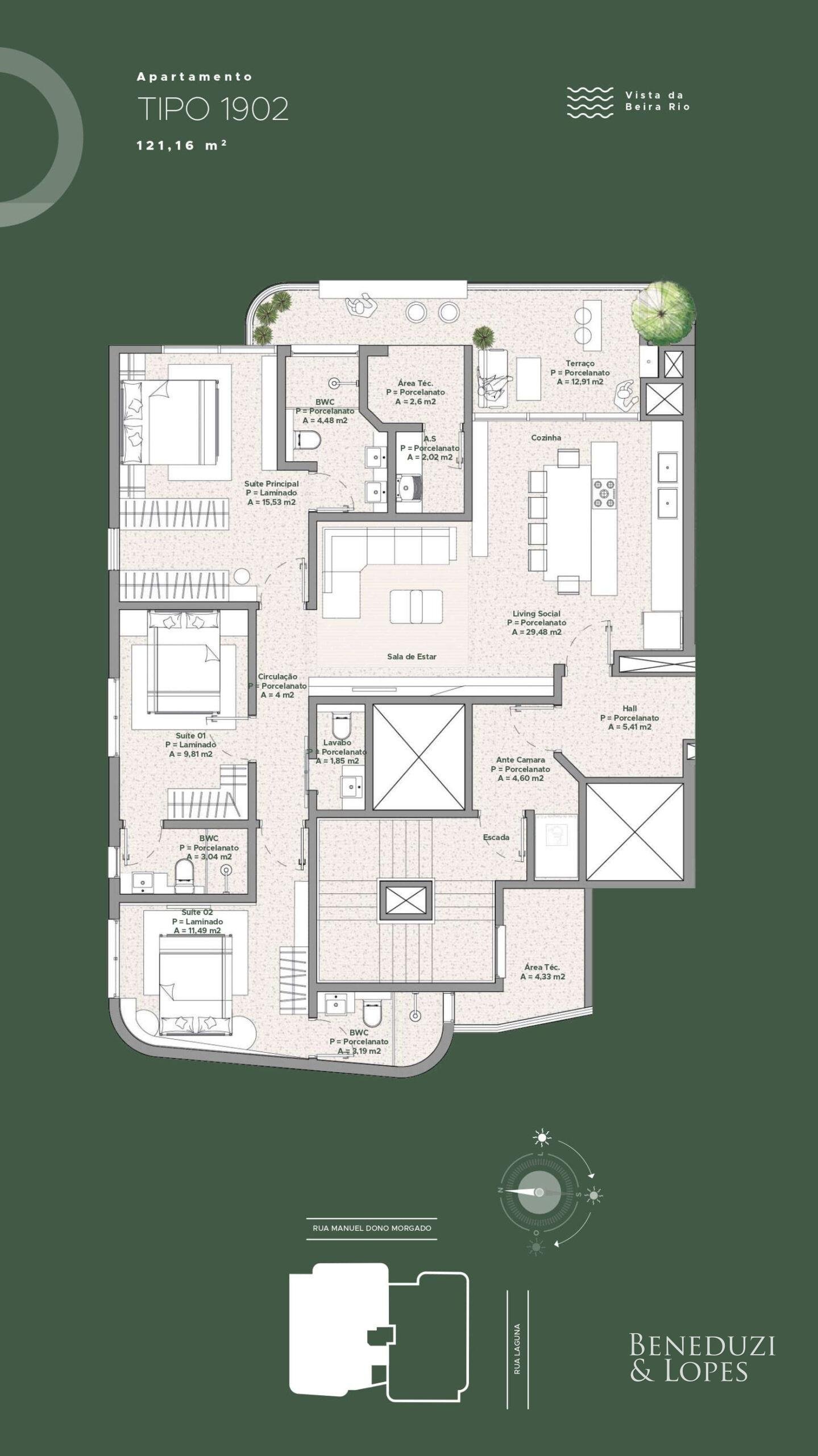 As unidades contam com metragens que variam de 120m² a 180m², oferecendo espaços generosos, ideais para quem busca conforto, sofisticação e qualidade de vida.