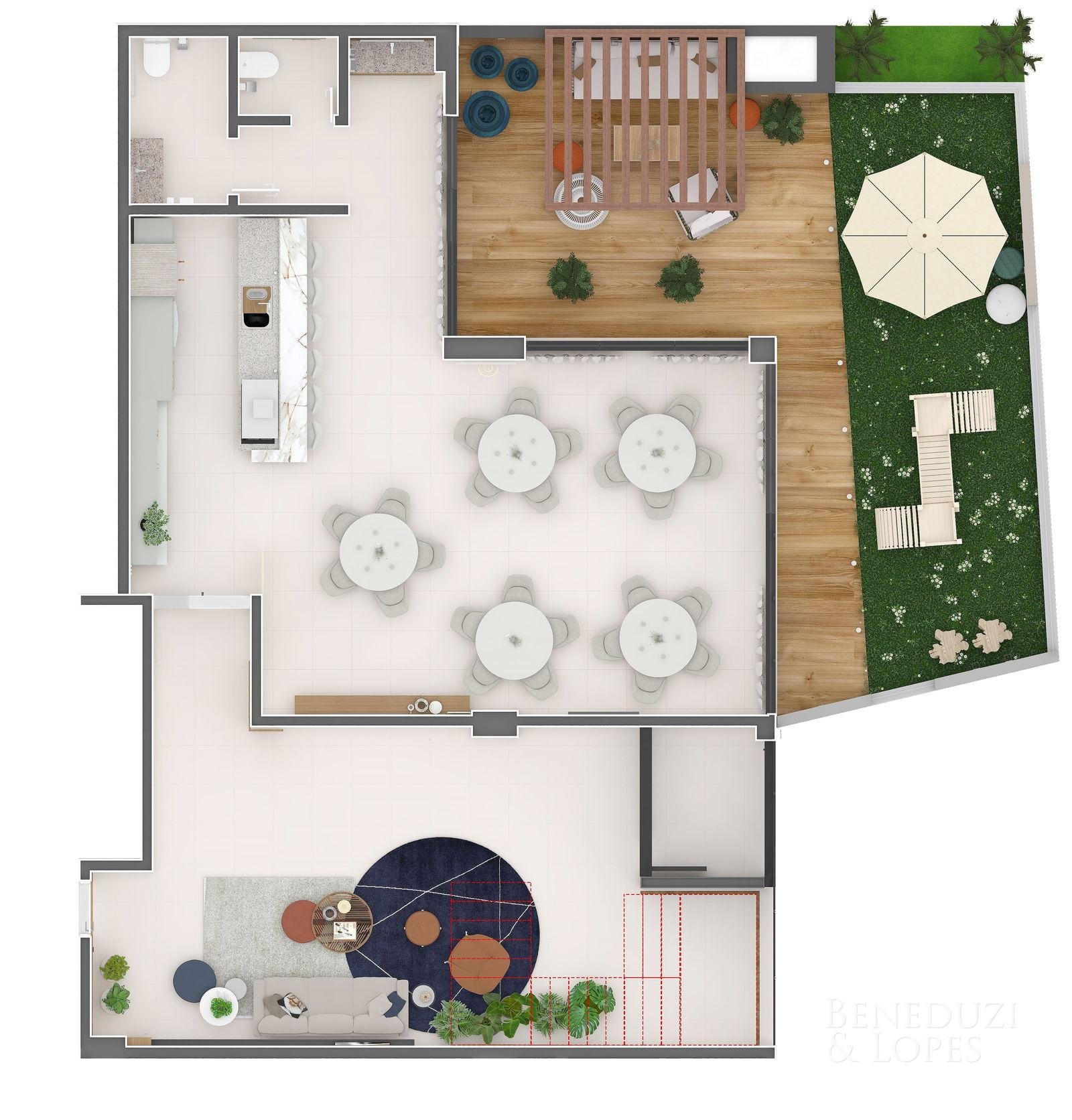 Dispõe também de fechadura eletrônica com senha na porta de entrada, portas com puxadores diferenciados, hidrômetro e gás individuais, além de medição individualizada de gás e água e medição de energia elétrica por telemetria, garantindo mais praticidade e controle no dia a dia. A unidade conta ainda com infraestrutura para TV, telefone e internet, tubulação de água quente e fria e sistema de coleta seletiva, reforçando a funcionalidade e organização do empreendimento.