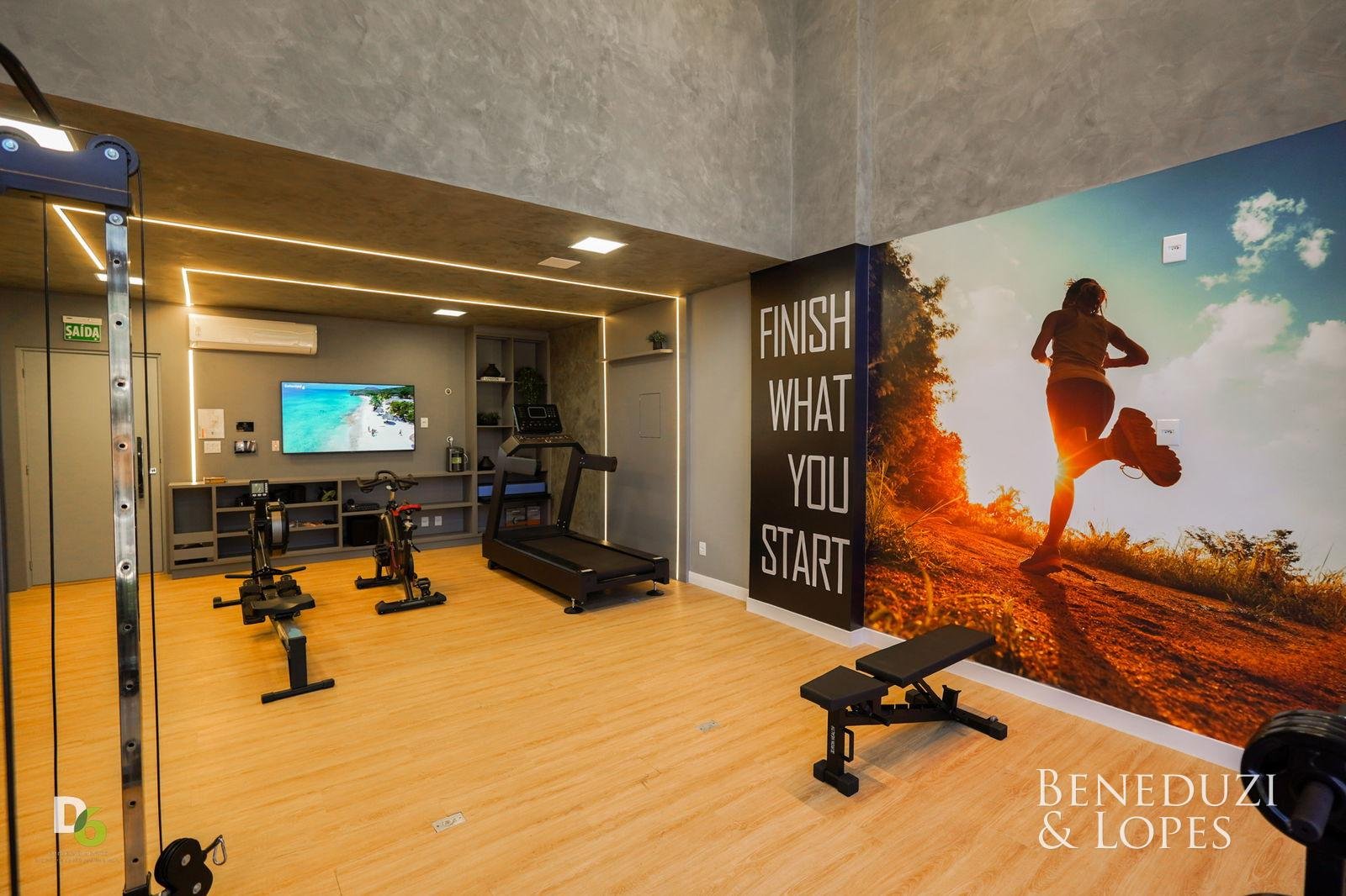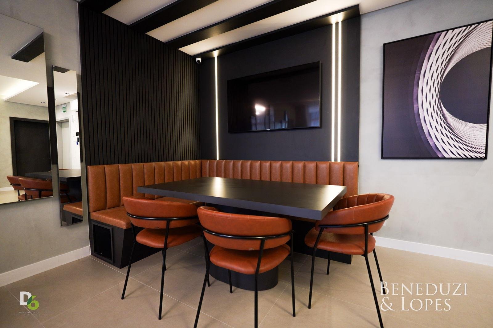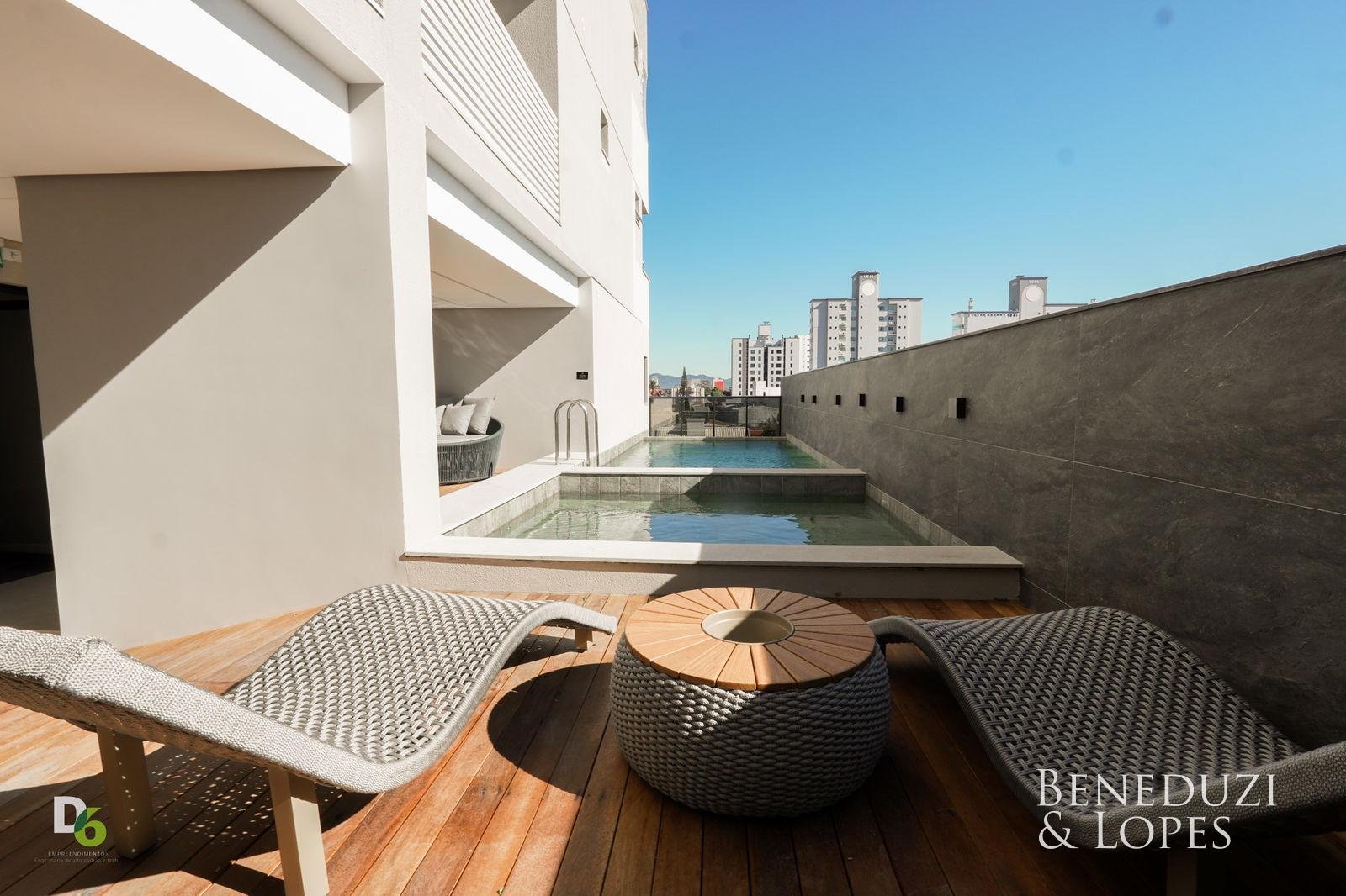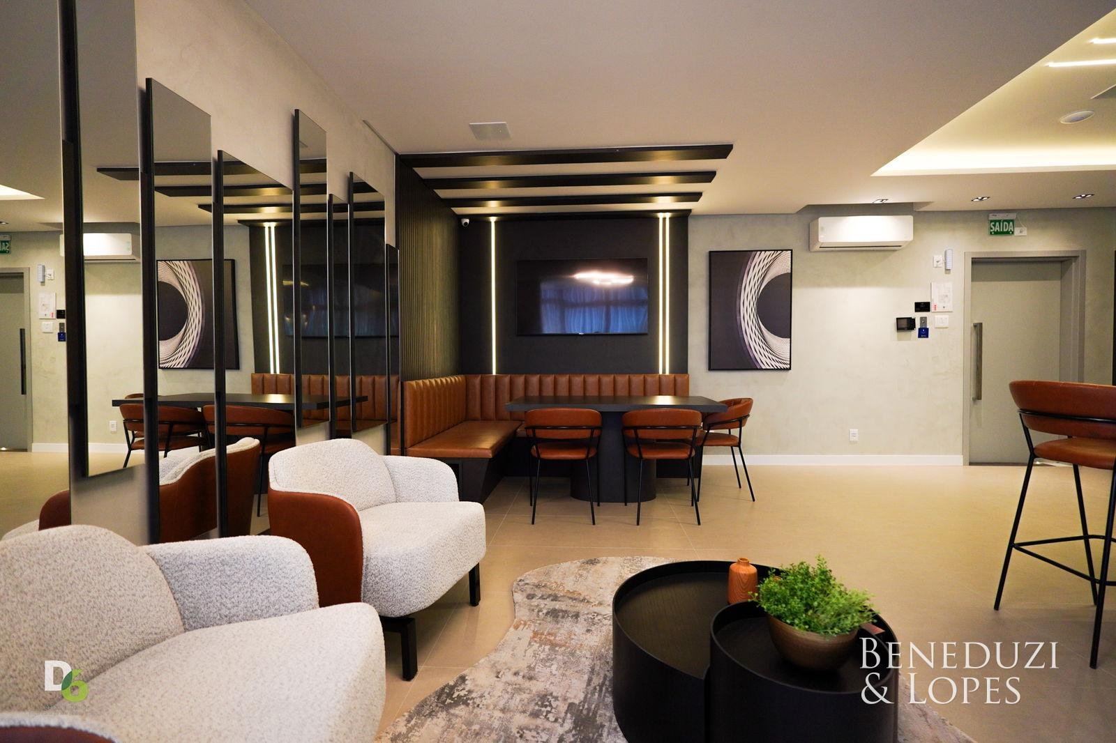 A unidade possui infraestrutura para água quente, espera para ar-condicionado tipo split em todos os ambientes, acabamento em gesso, além de piso porcelanato no living e cozinha e piso vinílico nos dormitórios. Dispõe também de infraestrutura para TV, telefone e internet, circuito interno de TV, tubulação para água quente e fria, puxadores diferenciados e vaso sanitário monobloco, reforçando o padrão de qualidade do imóvel.