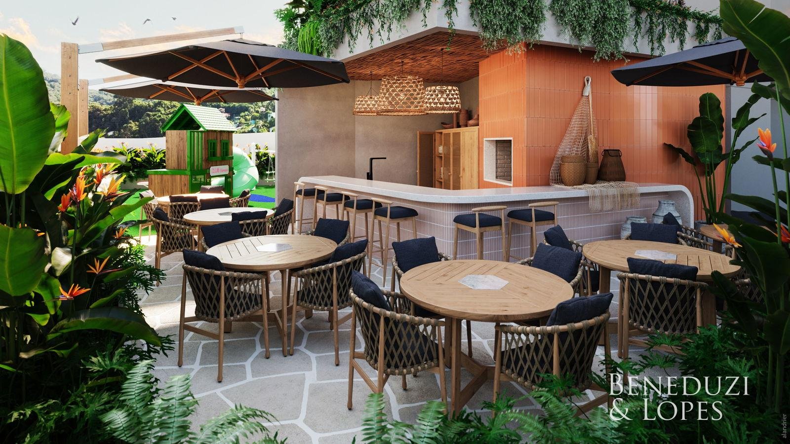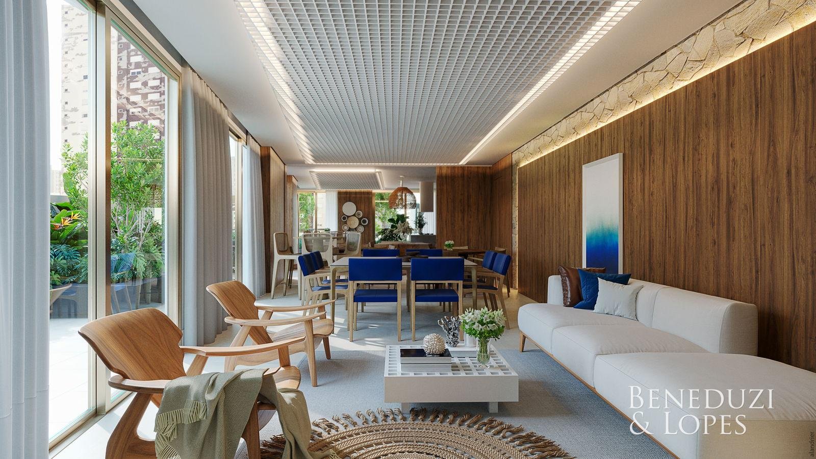 Apartamento com living integrado e sala de jantar, proporcionando ambientes bem distribuídos e funcionais. Conta com lavabo, área de serviço e sacada com churrasqueira, ideal para momentos de lazer e convivência.