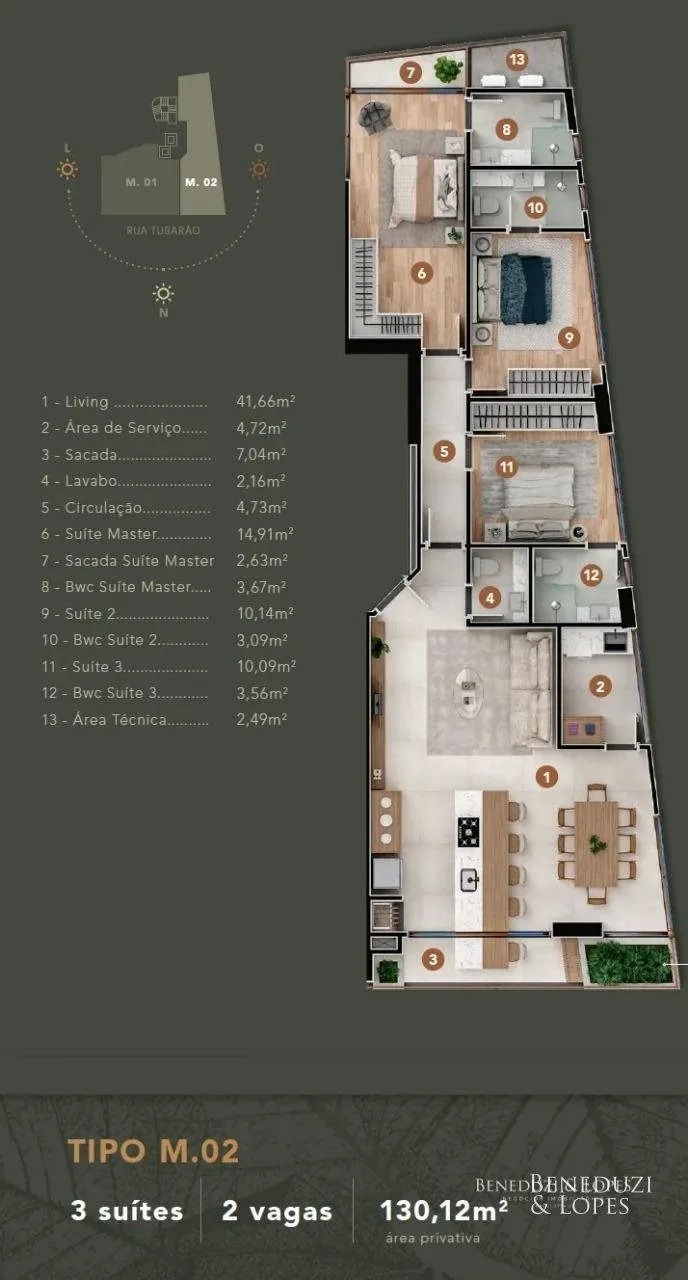 Tipo 2 – 3 suítes | Área Priv. 130,12m²