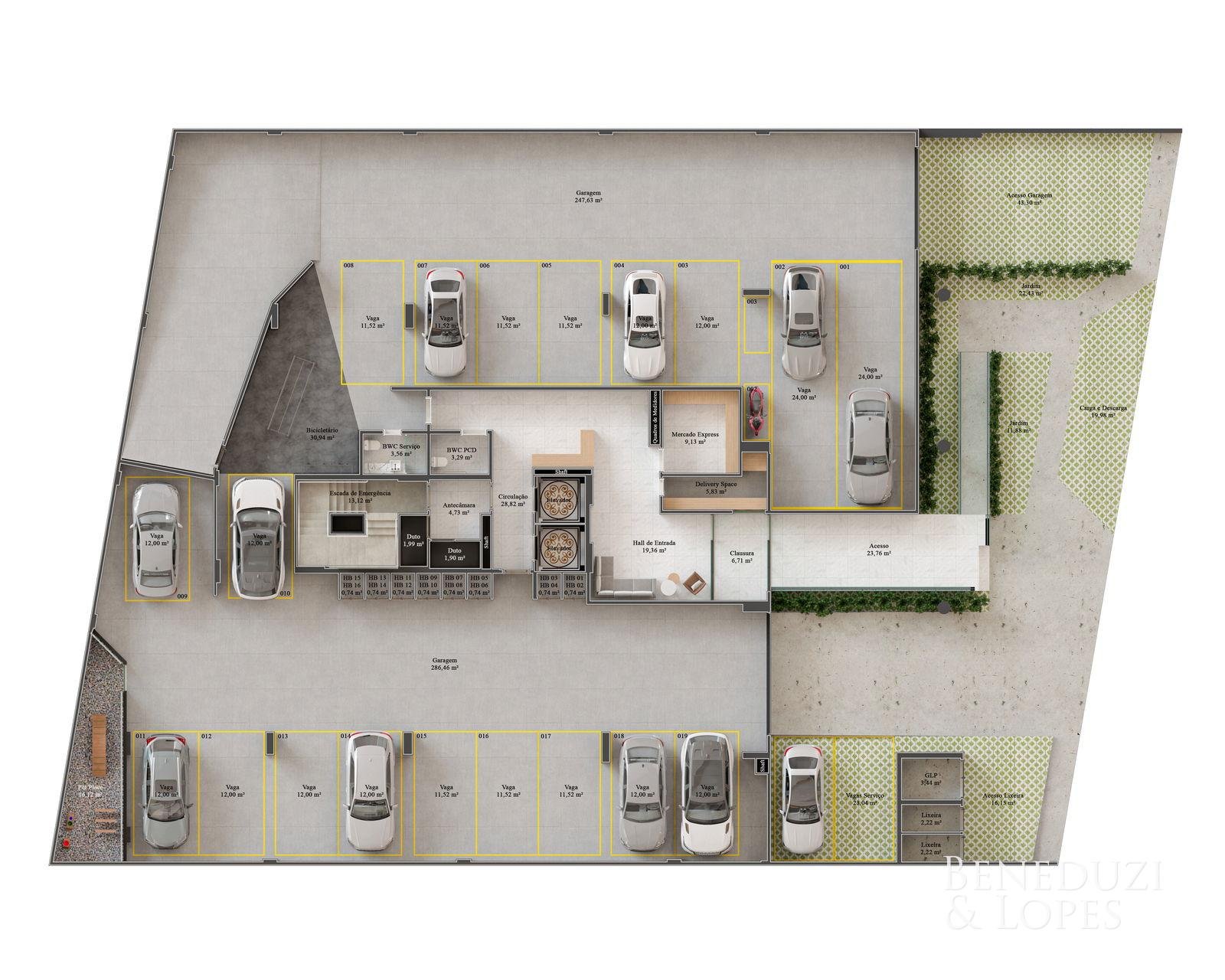 As unidades dispõem ainda de 01 ou 02 vagas de garagem, conforme a tipologia.