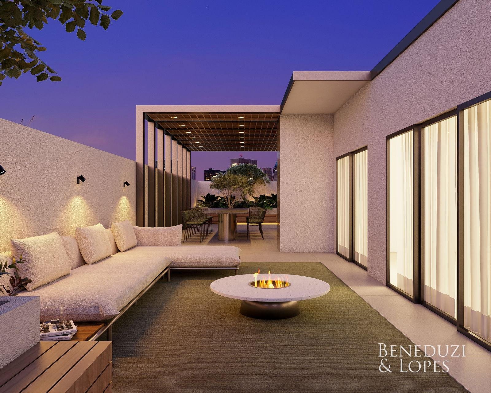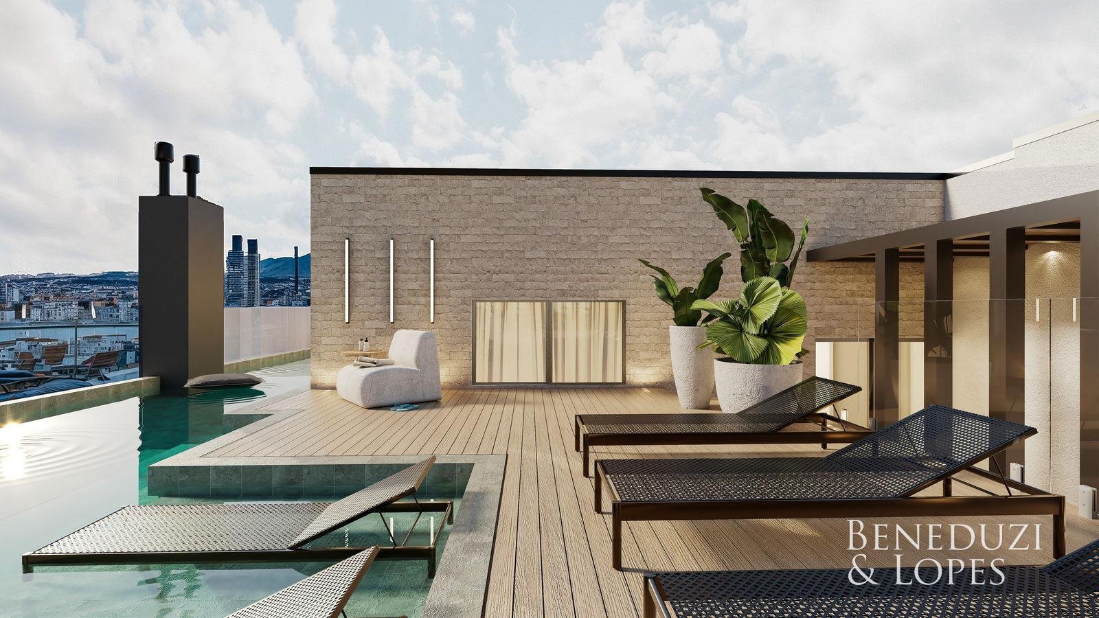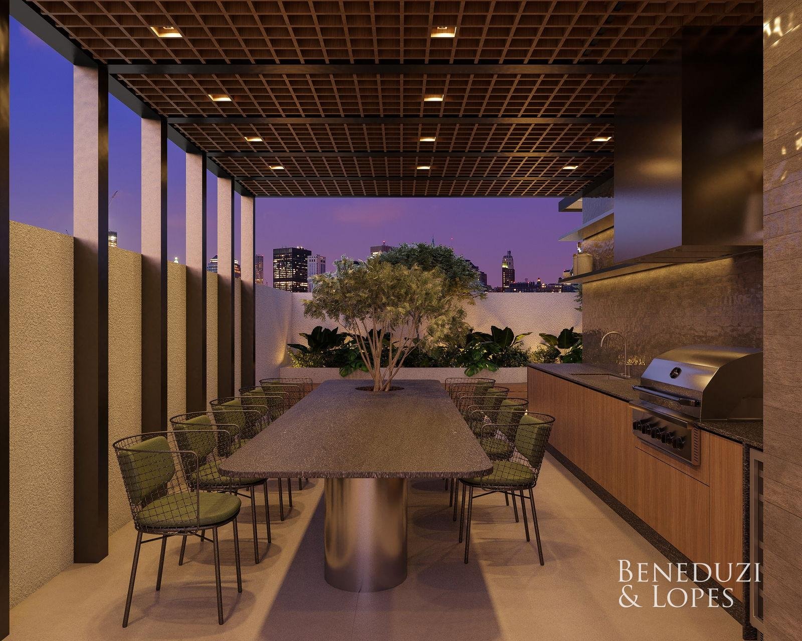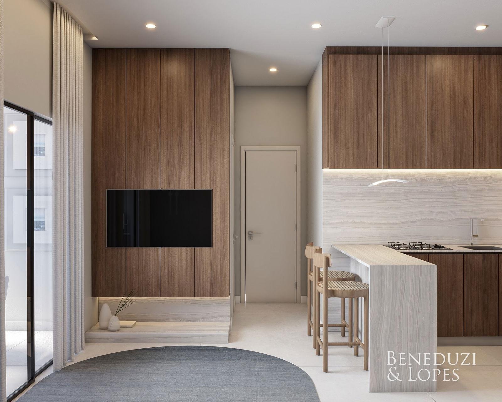 Loft com 02 suítes, oferecendo um conceito moderno e funcional, com living integrado, sala de estar e sala de jantar, além de cozinha americana que valoriza a integração dos ambientes. Conta com sacada e varanda gourmet com churrasqueira, ideal para momentos de lazer.