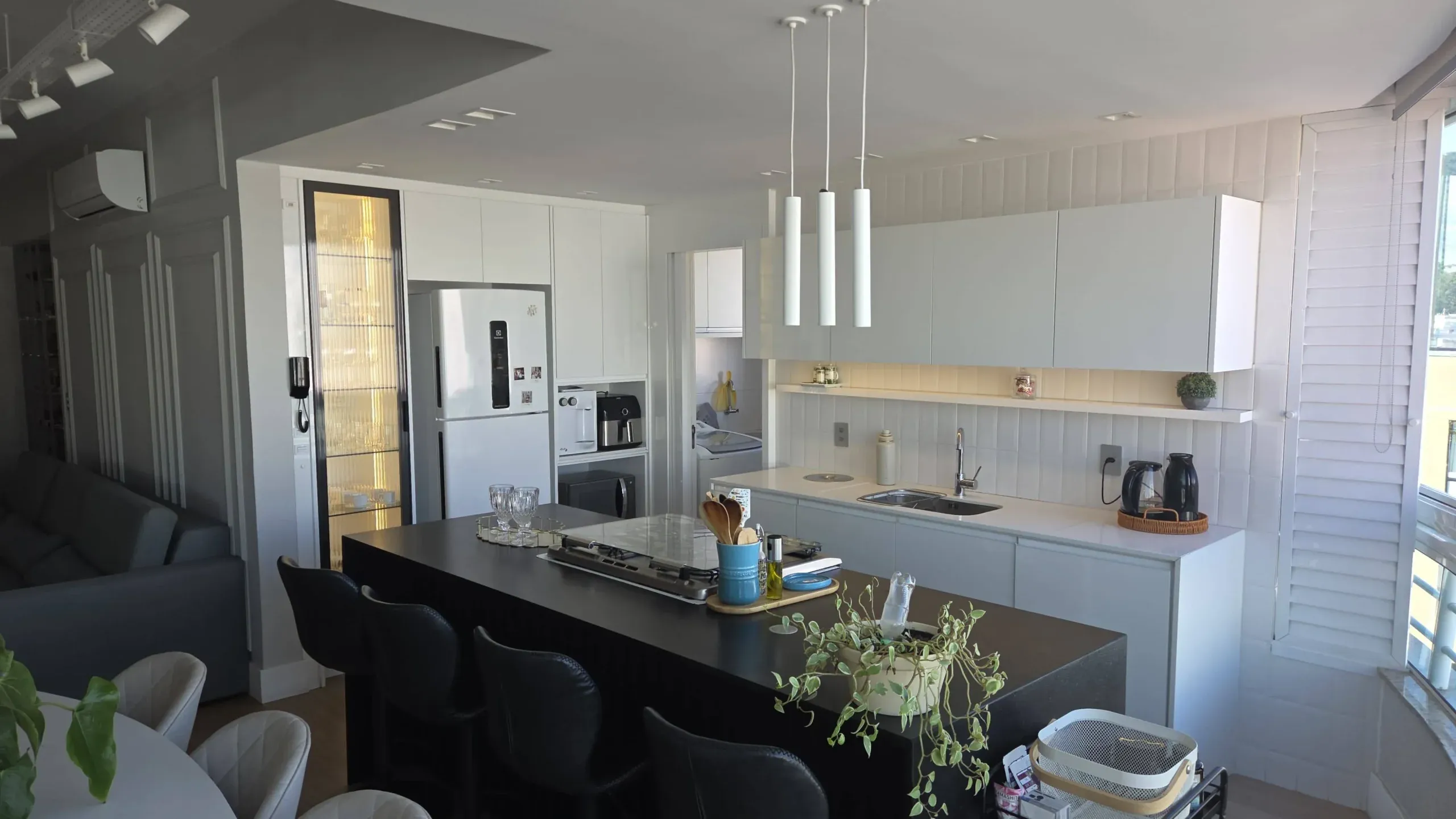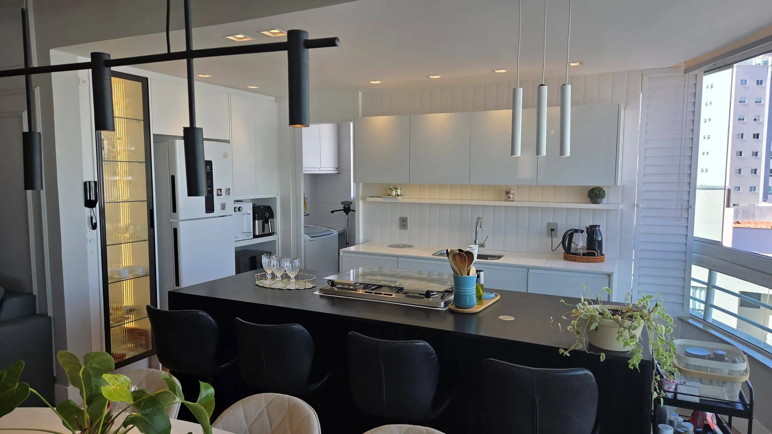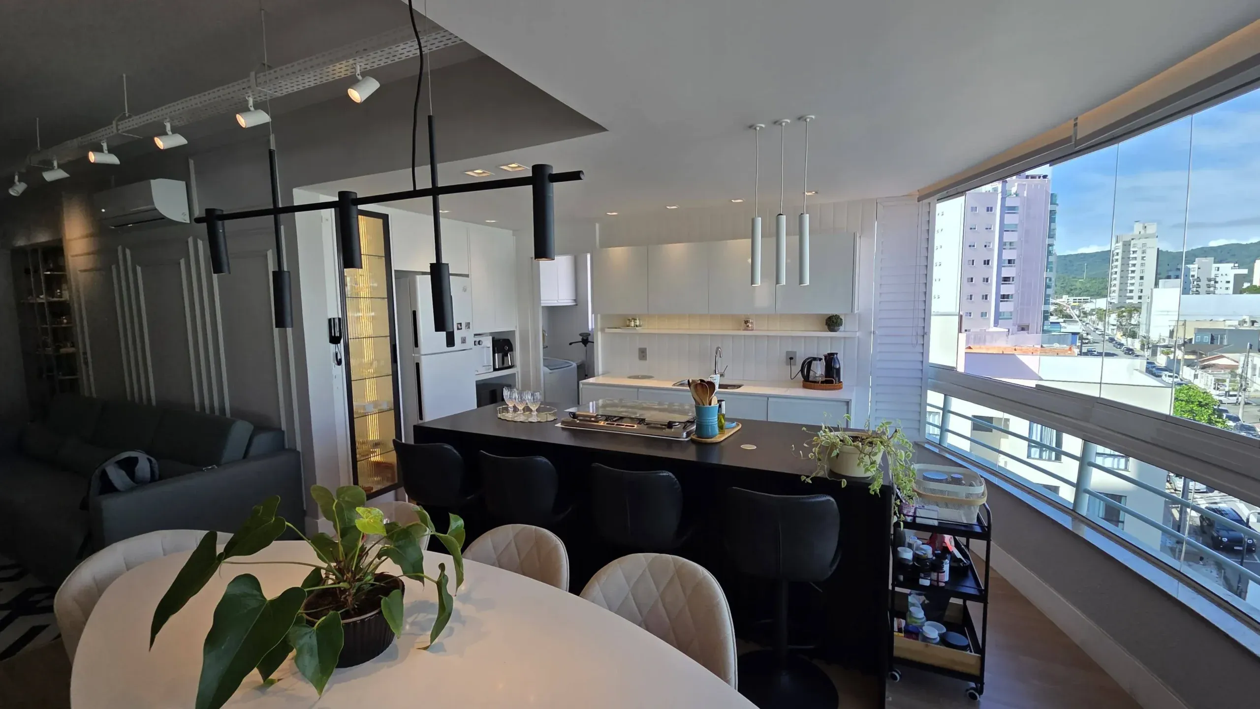 Apartamento com 01 suíte + 02 dormitórios, banheiro social, sala e cozinha integradas em ambiente moderno, com ilha central, churrasqueira a carvão privativa e ambientes totalmente mobiliados, equipados, decorados e climatizados, proporcionando conforto e praticidade no dia a dia, com 96 m² de área privativa.