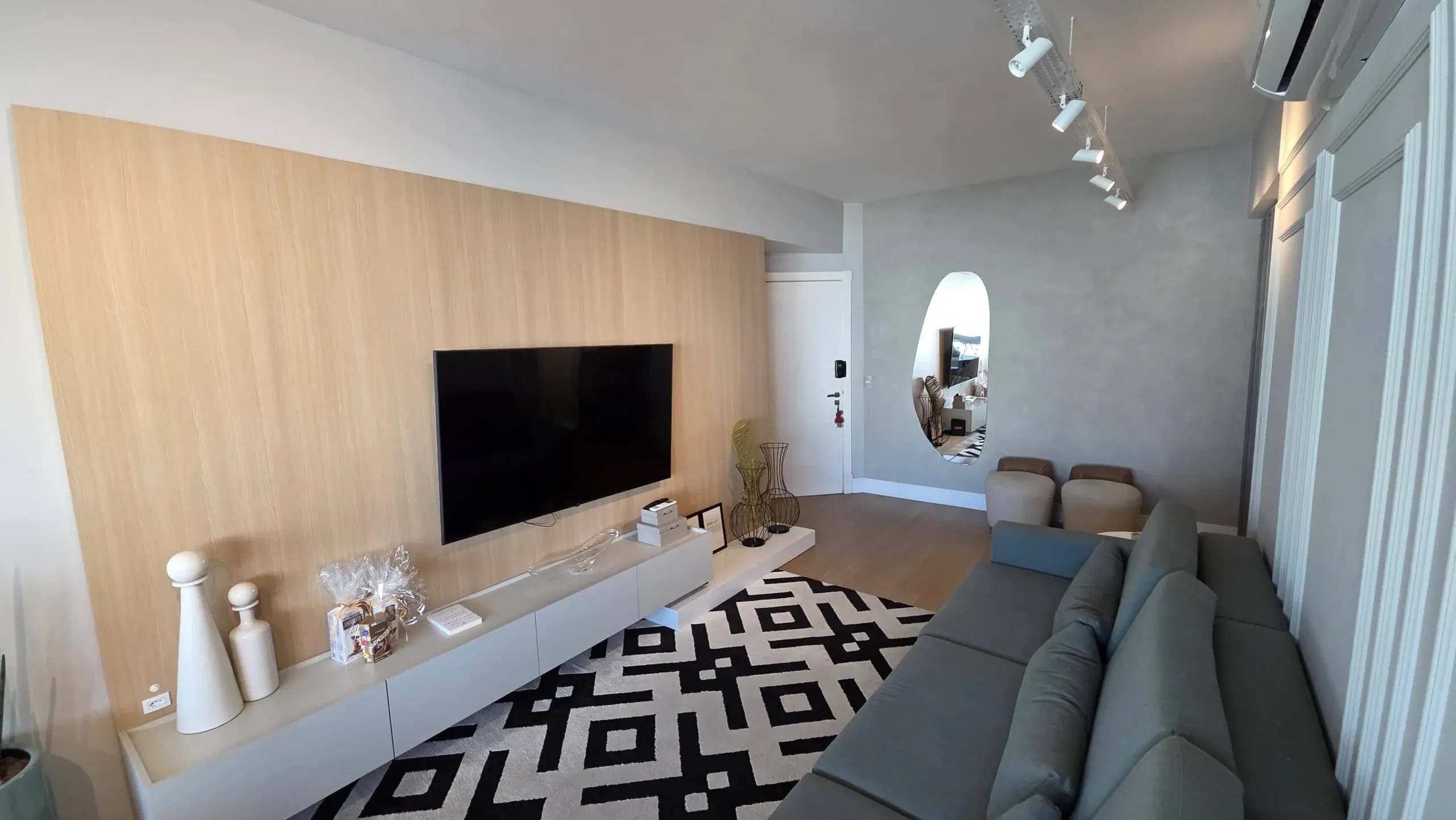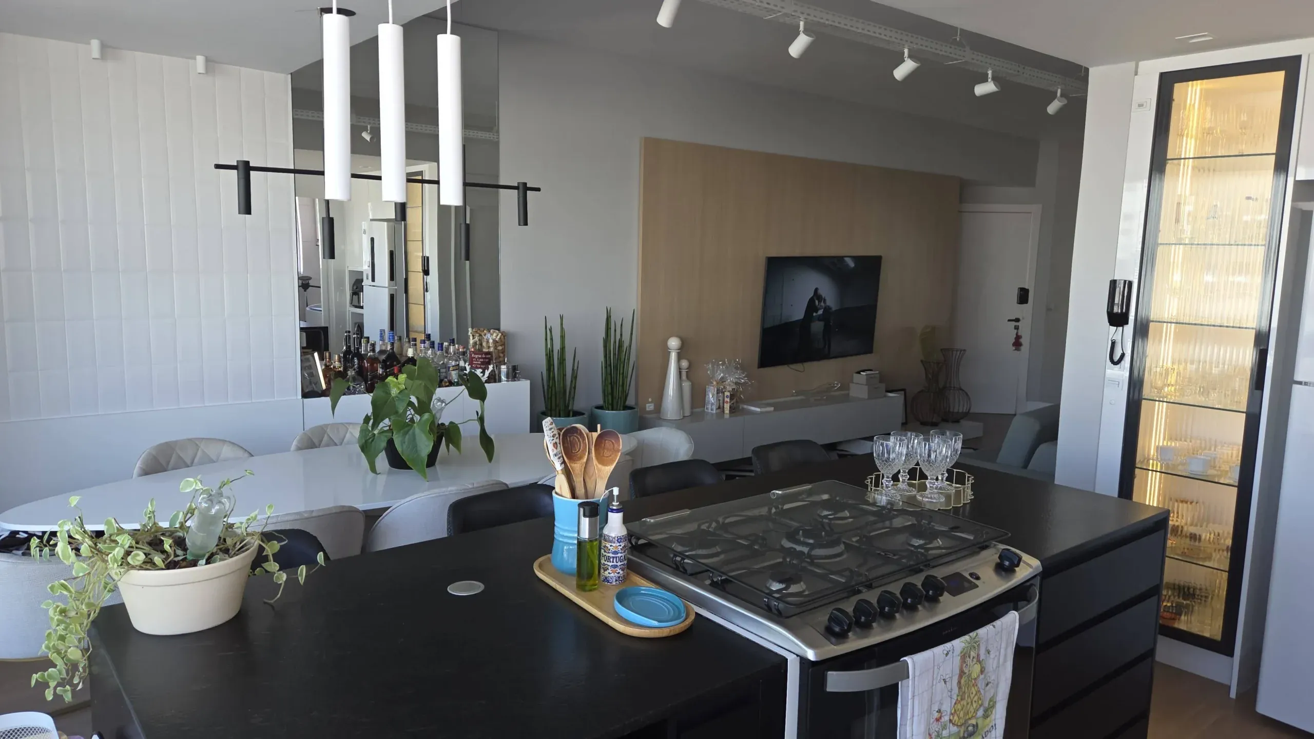 Apartamento com living integrado e sala de estar, proporcionando ambientes…