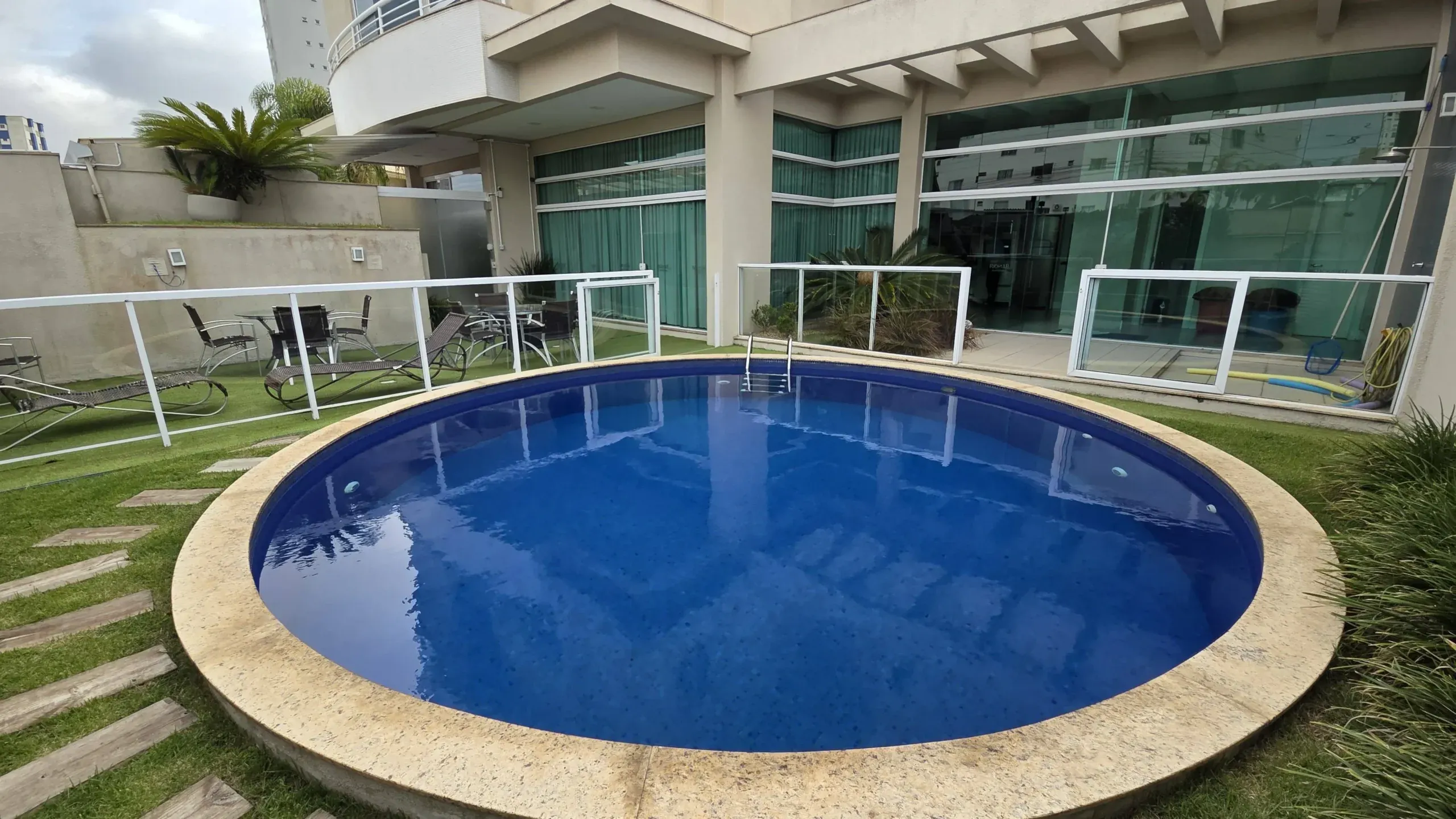 Conta com 02 vagas de garagem e está inserido em condomínio com área de lazer, incluindo piscina e salão de festas.