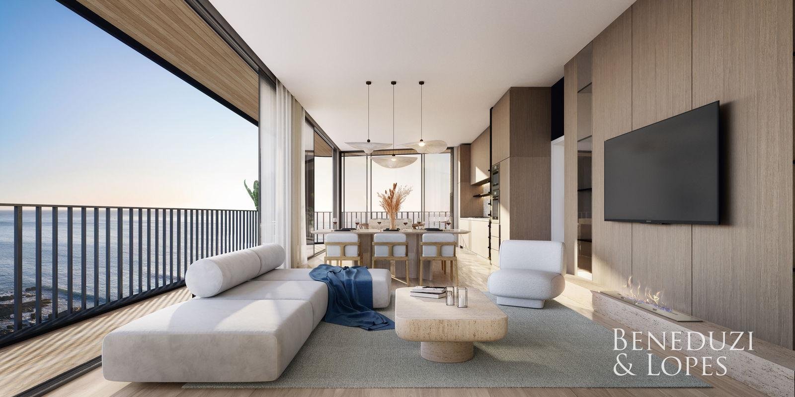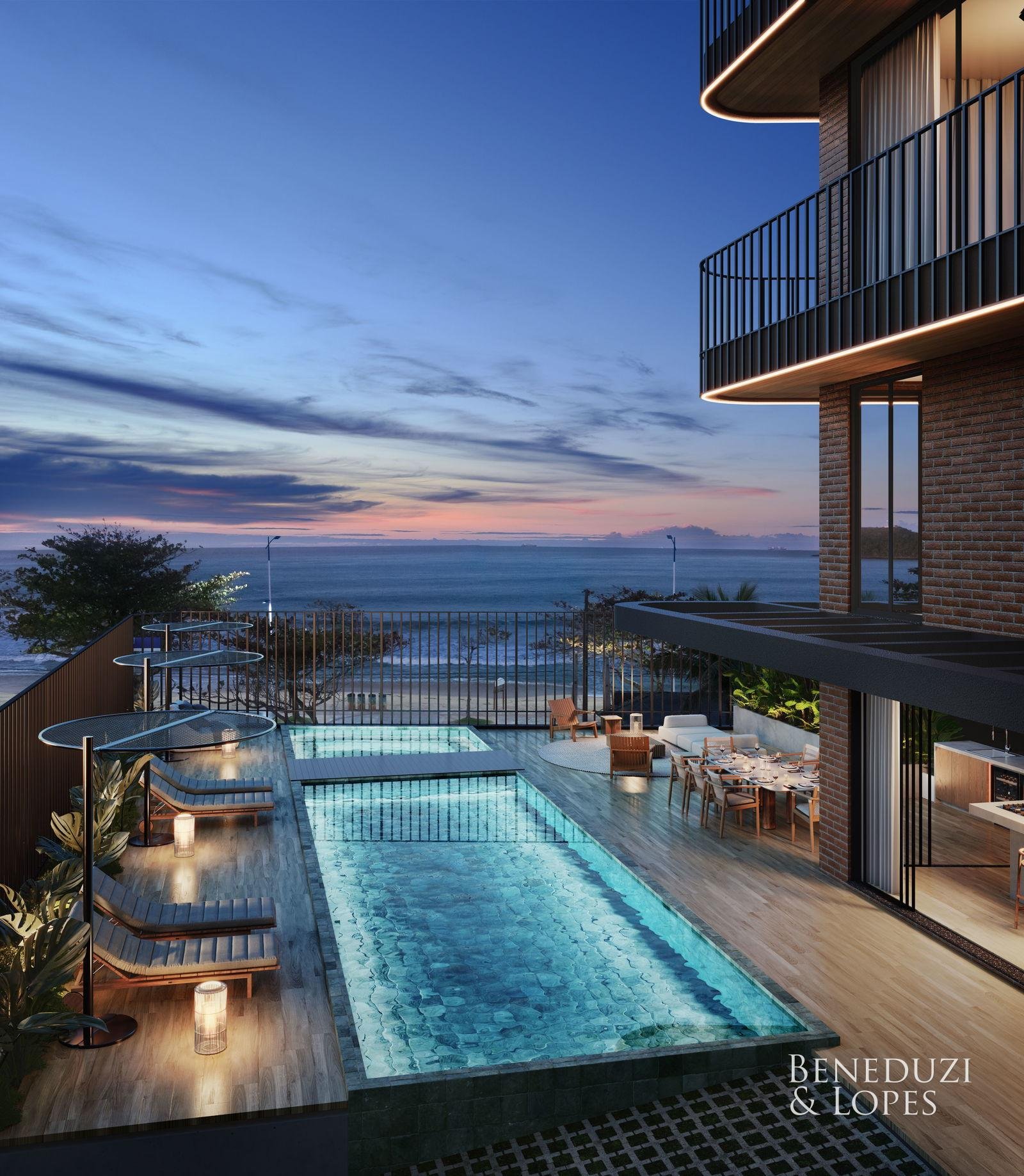 Medidores de água, luz e gás individuais Hall de entrada decorado e mobiliado Interfone Piscina Piscina térmica Salão de festas Piscina infantil Piscina adulto Painéis de energia solar Internet Hidromassagem na piscina Espaço gourmet Entrada p/ banhistas e box de praia Elevador Circuito Tv Alarme Academia Empreendimento personalizável Projeto de interiores para cada comprado