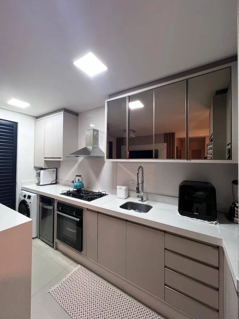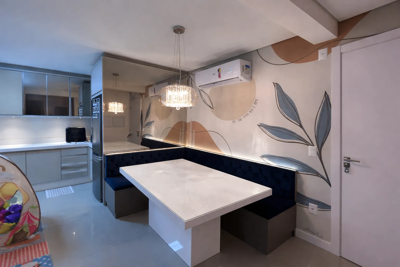 Apartamento de 01 suíte e 01 dormitório, living integrado com sala de estar e jantar, cozinha, área de serviço e sacada, com 72 m² de área privativa.