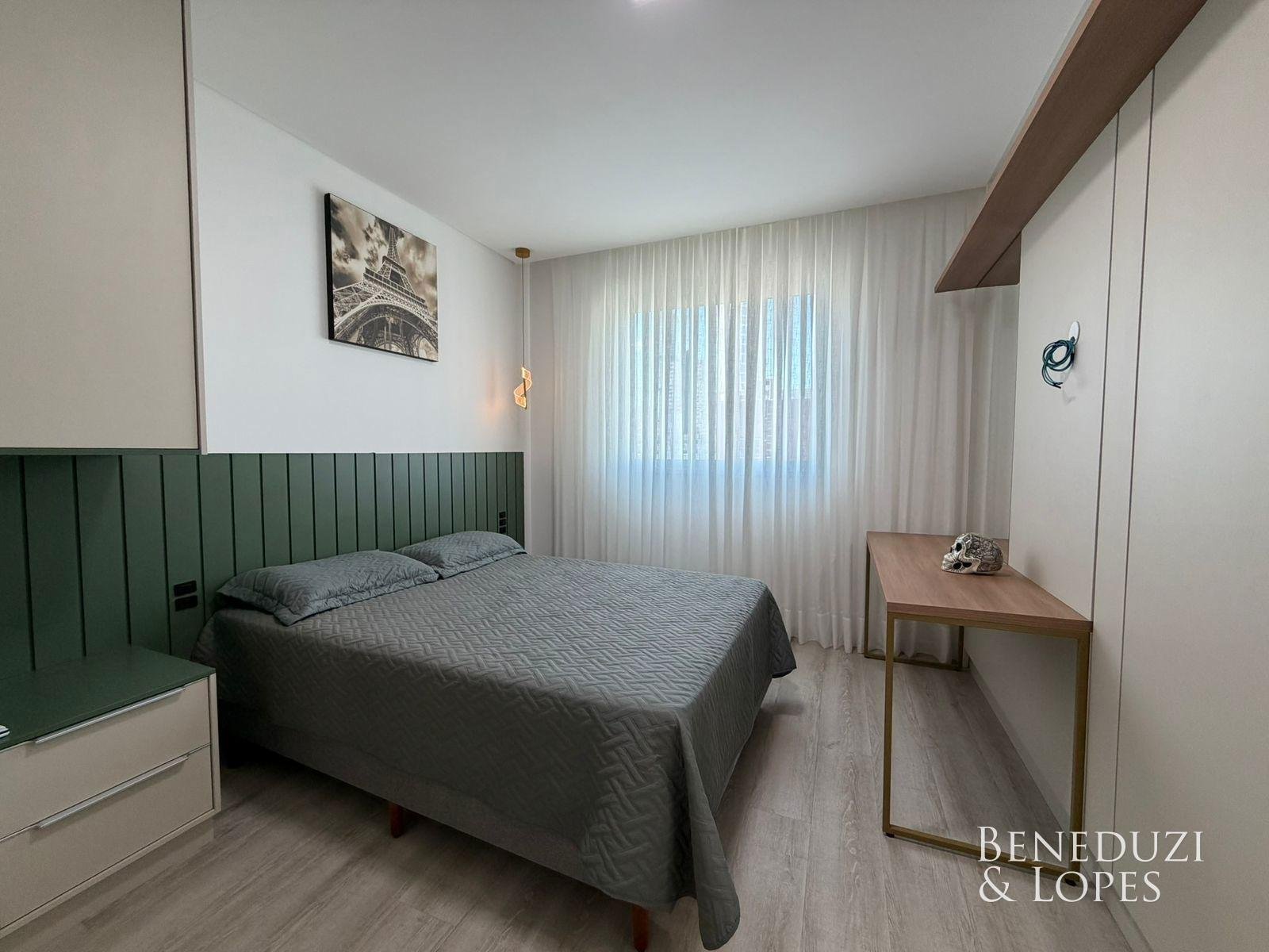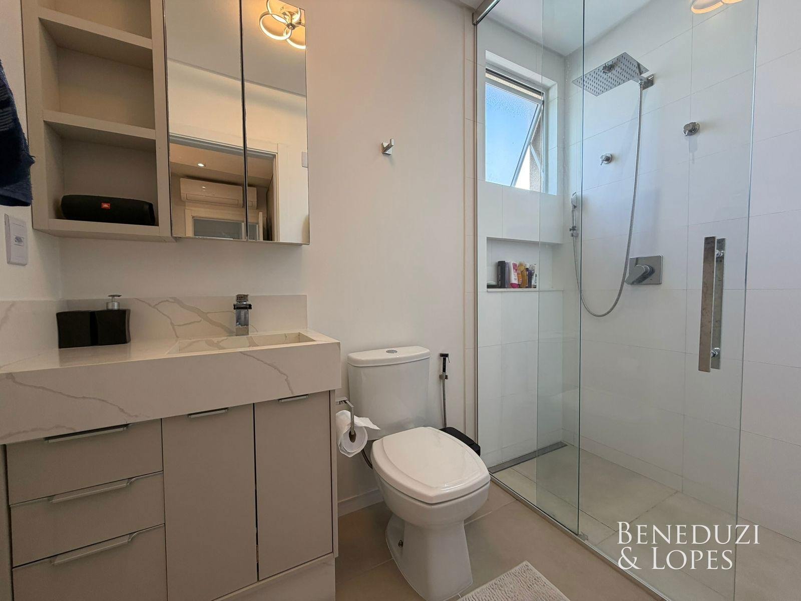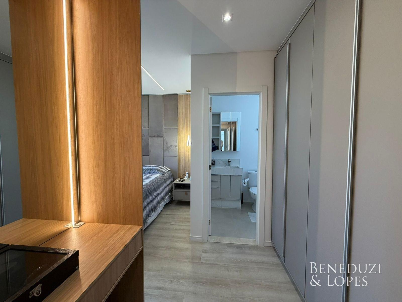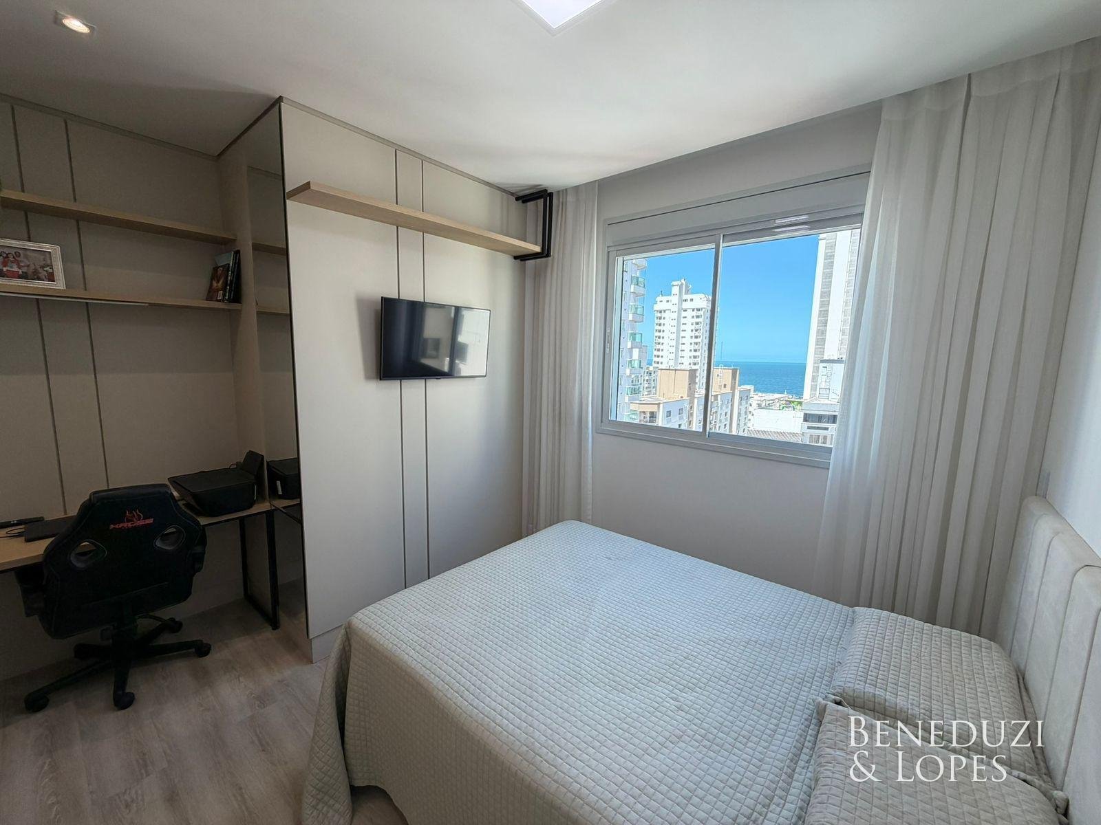 A unidade dispõe de infraestrutura para água quente, aquecimento a gás, espera para split, acabamento em gesso e porcelanato, além de piso vinílico nas áreas íntimas, garantindo conforto e qualidade. Conta ainda com ar-condicionado, móveis planejados, armário de cozinha, hidrômetro e gás individuais, interfone e internet, além de fechadura com senha e acessibilidade para PNE, oferecendo praticidade, tecnologia e segurança.