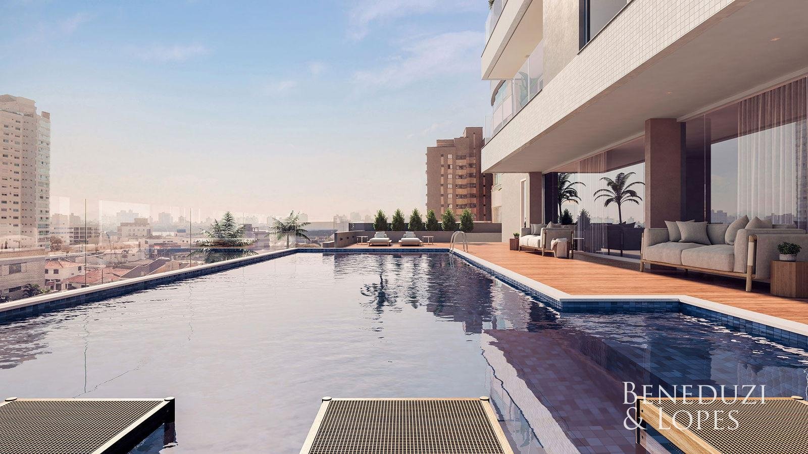 Hall de entrada decorado e mobiliado Playground Internet Reaproveitamento de água Guarita de segurança Spa Espaço gourmet Academia Elevador Medidores de água, luz e gás individuais Salão de festas Piscina Sala de jogos Brinquedoteca Solarium 2 Apartamentos por andar 2 Elevadores 1 Elevador de serviço Box nas garagens para artigos de praia e uso geral Áreas comuns entregues equipadas, decoradas e climatizadas Medidores individuais para água, luz e gás Monitoramento interno por câmeras Proteção perimetral Controle de entrada por biometria e senha nas áreas comuns Piscina com deck molhado Piscina com deck e raia Solarium Aproveitamento de águas pluviais 1 Vaga para carro híbrido por apto